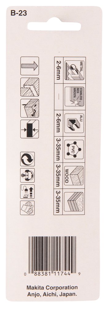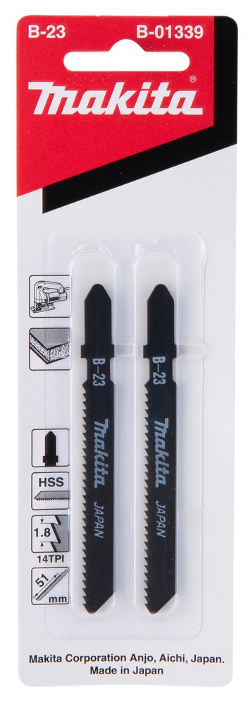 14 TPI • HCS • B-23 • Madera / Metal • 2 pcs DescripciónHoja de sierra de calar con dientes fresados y ondulados para cortar. Adecuada para materiales como madera, plásticos, aluminio y metal. Longitud total 76 mm con longitud de trabajo de 51 mm y 14 TPI. El paquete contiene 2 hojas. Esta hoja está fabricada con acero de alta velocidad (HSS). Es un material duro que tiene una gran durabilidad y es capaz de realizar cortes rápidos. La hoja es adecuada para materiales más duros como metal, cobre, aluminio y otros metales no ferrosos. El tipo de fijación de la hoja es el vástago de bayoneta, también conocido como vástago en T está diseñado para un cambio rápido y fácil de la hoja. La sección transversal en forma de T encaja en el soporte de la hoja de la sierra de calar. La forma del vástago garantiza un ajuste seguro, reduciendo el riesgo de que la hoja resbale o se suelte durante el trabajo. Los dientes fresados ayudan a la hoja a cortar más rápido y dejan una superficie de corte más rugosaEspecificaciones técnicasTipo, B-23Dientes por pulgada, 14Longitud total, 76 mmLongitud útil, 51 mmPlástico, 3 – 35 mmAcero templado, 2 – 6 mmMadera blanda y dura, 3 – 35 mmAluminio / Latón, 2 – 6 mmCantidad, 2Otras características relevantesAluminio Hoja de sierra de calar con forma de balloneta Hoja de sierra HSS Madera Metal Plástico PVC Sierra de calar