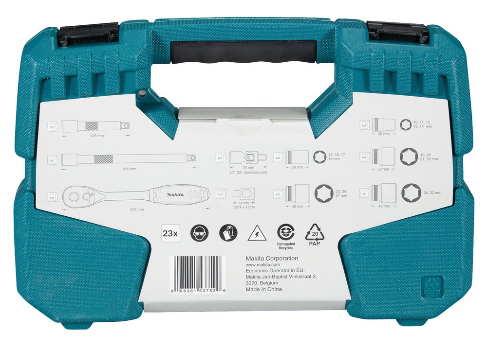 1/2″ Sq • 23 Pcs Especificaciones Técnicascantidad, 23 MAKITA.