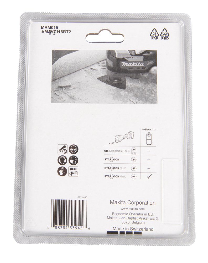 Starlock Max • 20G • TC / HM RIFF • MAM015 • Lechada / Abrasivos Plato de lijado de grano de carburo para aplicaciones de remoción áspera. Para mortero, fibra de vidrio, pegamento de azulejosDescripciónCuchilla multiherramienta STARLOCK MAX especialmente diseñada para la extracción y raspadura de materiales como madera y contrachapado. Esta placa TC/HM tiene una anchura de 116. La hoja tiene grano de 60. El paquete contiene 1 hoja. Cuchilla multiherramienta con soporte STARLOCK MAX. La cuchilla STARLOCK MAX está diseñada para las tareas más exigentes y ofrece el nivel más alto de transferencia de par, además es adecuada para aplicaciones pesadas. La cuchilla STARLOCK MAX tiene un código de colores para una fácil identificación. La cuchilla está diseñada para trabajos de extracción y raspadura. Tiene una placa de lijado de carburo de tungsteno que hace que esta hoja muy dura sea extremadamente resistente a la abrasión y al sobrecalentamiento. Estas características hacen que la cuchilla sea adecuada para diversos materiales. Especificaciones técnicasAnchura, 116 mmTipo de cuchilla, TC / HMGrano, 20Cantidad, 1Otras características relevantesBaldosas de cerámica Fibra de vidrio Madera Multiherramienta TC GranoStarlock Max