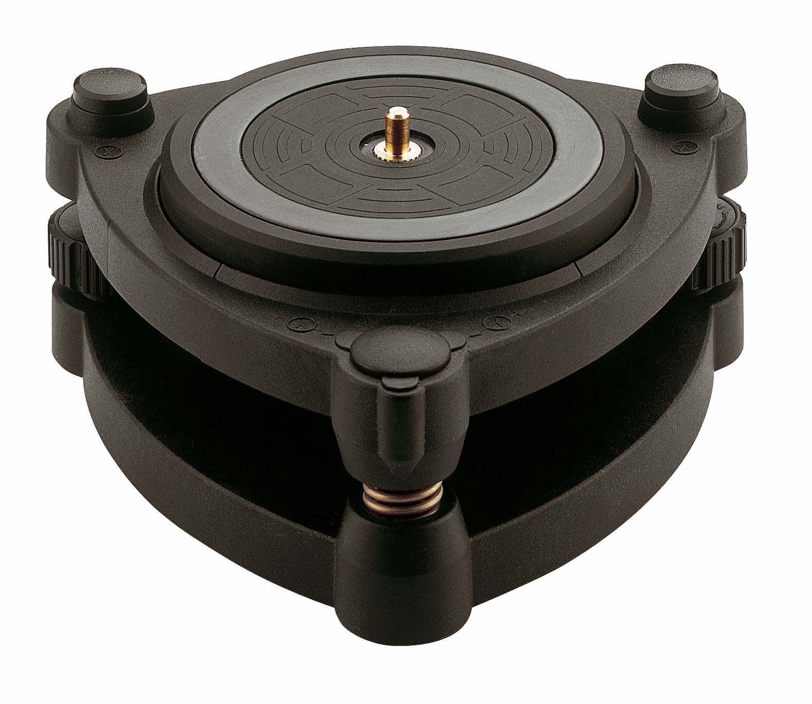 Base niveladora adaptable a niveles láser Sola manuales de punto: Lasertronic y Profiline. Cuerpo de Grivory®, plástico con 30% fibra de vidrio. Rosca de 5/8″ para trípode. 3 puntos de apoyo.