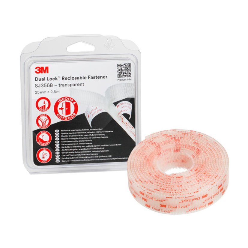 Cinta Cremallera Textil Adhesiva Dual Lock 3M SJ3560. Características destacadas: 2, 5 m x 25 mm. r 7100123340. Adecuado para fijación, unión y montaje en obra, taller o bricolaje.