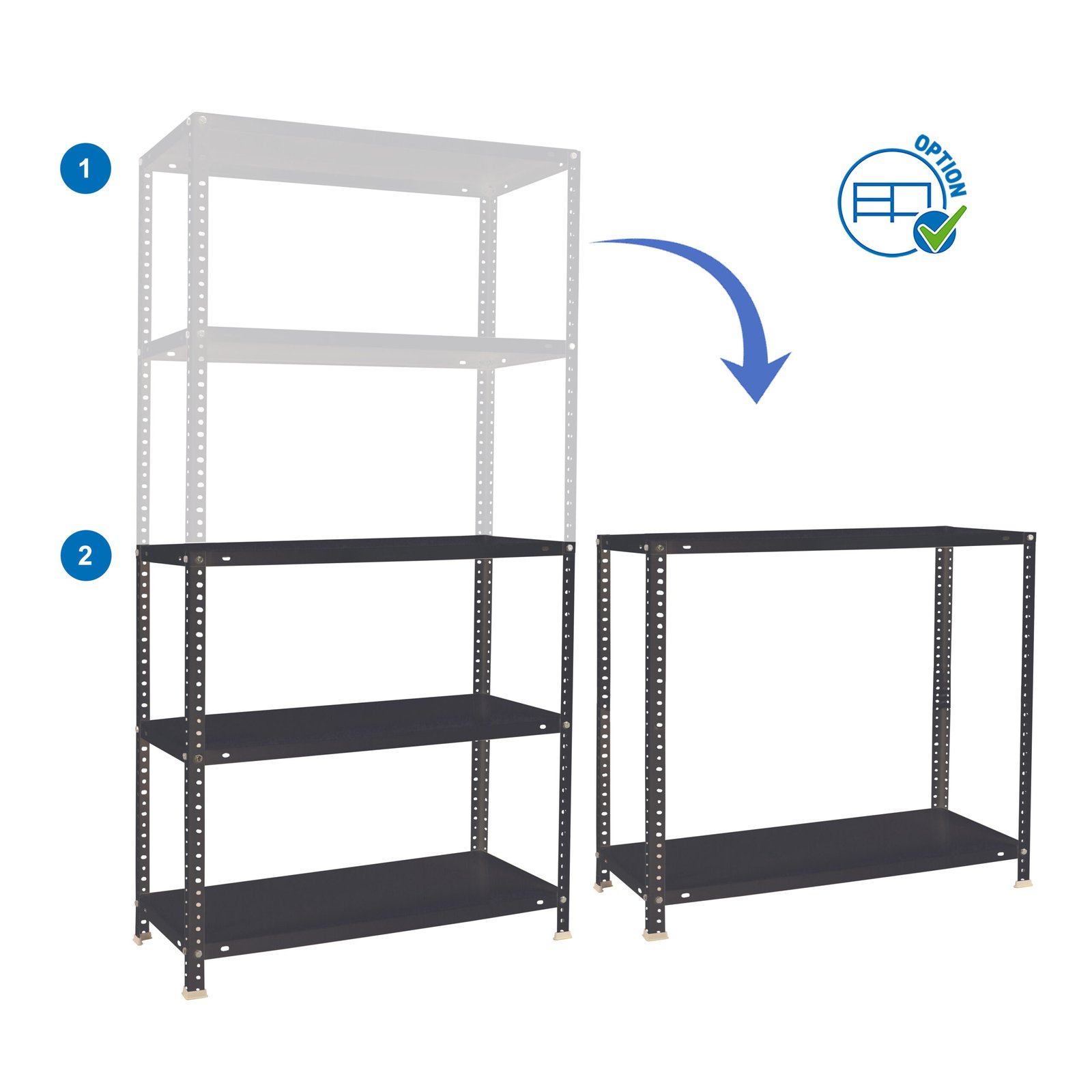 Estanteria metalica con tornillos, de color ANTRACITA.Tiene 5 estantes. Las dimensiones de esta estanteria son: 1800x800x400 mm. Y tiene una capacidad de carga de 100 kgs por estante, certificamos a punto de flexion, no de rotura. La ultima bandeja no debe superar los 10 cm de distancia con respecto al suelo. No se tambalea y no tiene aristas de corte. Es fabricado en Europa por Simonrack y se monta rapido siguiendo las instrucciones. Video de montaje: https://www.youtube.com/watch v=qmx57bCt7qc