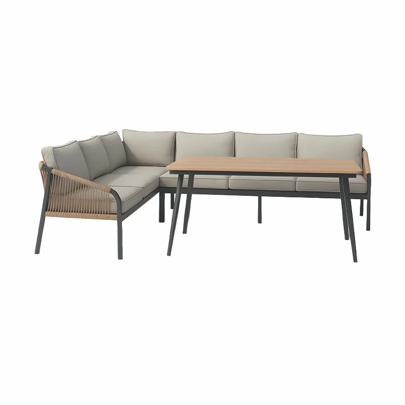 Conjunto Esquinero Jardín Soe 193x71x72 cm 186x71x72 cm. Características destacadas: Sofa 3 plazas. 193x71x72 cm. r Sofa banco. 186x71x72 cm. r Mesa. 140x70x70 cm. Pensado para tareas de jardín, riego, cultivo y mantenimiento exterior.