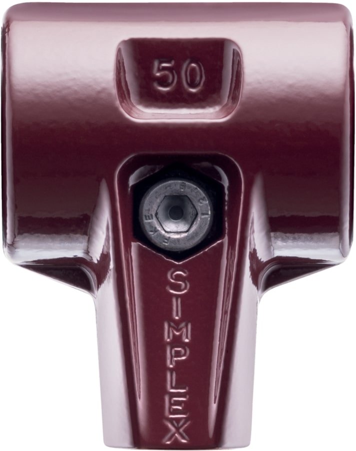 Cuerpo de acero fundido para mazas y mallos Simplex de fácil y rápida sujeción del mango y las bocas mediante tornillo central y con manguito protector del mango integrado. Reduce el ruido y las vibraciones. La ausencia de esquirlas y agrietamientos hace que tenga gran resistencia a la rotura. Incluye tornillo, tuerca y arandela. Pintado epoxi.