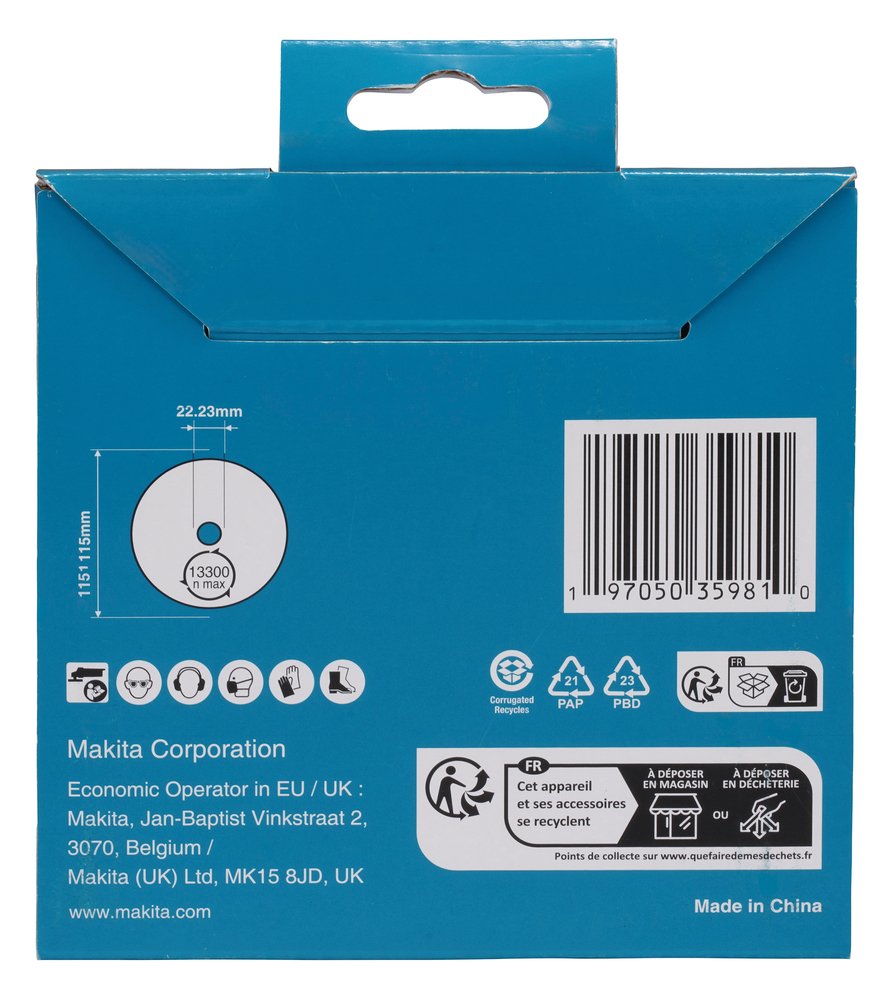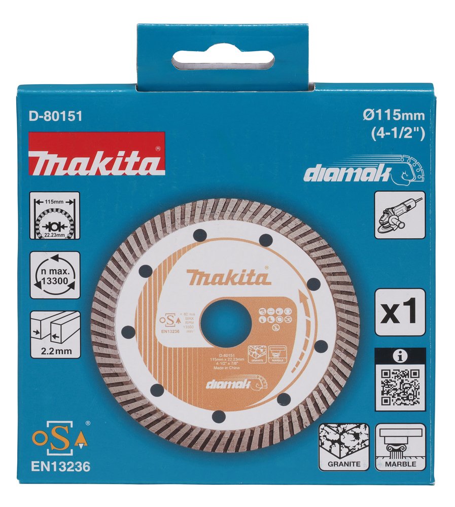 Disco De Diamante 115 X 22,23 Mm, Banda Turbo Makita D-80151 115x22 Mate Altura Máx. 10 M