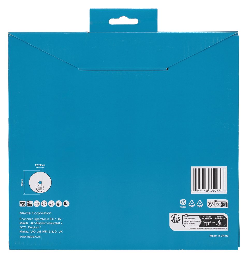 Disco diamantado Diamak de 230 mm para el corte de materiales universales.DescripciónDisco diamantado Diamak de 230 mm de diámetro para corte en seco de granito y mármol. El disco es de tipo ondulado y tiene una altura del segmento de diamante de 10 mm y un diámetro interior de 22,23 mm. Adecuado para amoladoras y cortadoras eléctricas de 230 mm.Especificaciones técnicasDiámetro: 230 mmTamaño del orificio (diámetro del orificio): 22,23 mmAltura del segmento: 10 mmCantidad: 1Otras características relevantesAmoladora angular 2