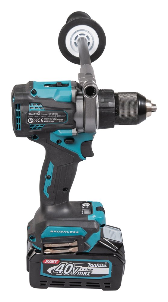 40Vmax • 140 Nm • 0 – 2. 600 min⁻¹ Herramienta sin escobillas extrafuerte para taladrar y atornillar con fuerzaDescripciónUna potente herramienta sin escobillas para atornillar y taladrar con dos configuraciones de potencia para uso profesional. Un alto par máximo de 140 / 68 Nm. Una elección ideal para trabajos que requieren alta potencia y par. Luz LED integrada. Sin batería ni cargador en equipo básico. El DF001G es una opción ideal para la perforación de trabajos pesados. Ofrece 140 Nm de par máximo y alcanza 2600 RPM. Números impresionantes para una máquina que sólo pesa 3 kg con una batería de 4, 0 Ah. Las prácticas características del taladro incluyen 41 ajustes de embrague electrónico, por lo que elegir el par adecuado para el trabajo es fácil. La tecnología de detección de retroalimentación activa (AFT) hace que el DF001G sea seguro incluso cuando se trabaja con sierras de gran tamaño, ya que apaga el motor si se para la rotación. La nueva tecnología XGT® ofrece también otras ventajas, como una mayor durabilidad y la comunicación digital entre la batería y la máquina. Con estas características, la DF001G está preparada para realizar trabajos duros ahora y en el futuro. Beneficios del usuarioEl sistema de protección de la batería corta automáticamente la alimentación cuando el nivel de la batería es bajoLa tecnología de detección de retroalimentación activa (AFT) detiene el motor si la rotación se detiene repentinamenteSelector Jog para ajustar fácilmente el par de montaje, confirmación visual del par seleccionado en la pantalla digitalTecnología de protección extrema (XPT) diseñada para ofrecer una mayor resistencia al polvo y al agua en las duras condiciones del lugar de trabajo. Especificaciones técnicasTensión XGT, 1Tensión nominal de la batería, 40 VQuímica de la batería (Ni-Cd / Ni-MH / Li-ion), Li-ionVelocidad sin carga, 0 – 650 / 0 – 2600 min⁻¹Par de apriete máx. Duro/Blando, 140 / 68 NmAjuste del par de embrague, 41 / 21Par máximo, 150 NmMáx. Diámetro de perforación en madera, 76 mmCapacidad de perforación Madera (barrena), 76 mmCapacidad de perforación Madera (broca autoalimentada), 76 mmMáx. Diámetro de perforación en acero, 20 mmInserción directa, 1/2″-20UNF «Capacidad del portabrocas, 1, 5 – 13 mmPeso neto del producto, 1, 7 kgNivel de presión sonora (LpA), 75 dB(A)Incertidumbre del ruido (Factor K), 3 dB(A)Peso de la herramienta con batería, 2, 7 – 3, 0 kgDimensiones de producto (L x W x H), 181x86x282 mmNivel de vibración, perforación en metal, ≤ 2, 5 m/s²Incertidumbre de vibración (Factor K), perforación en metal, 1, 5 m/s²Motor sin escobillas, 1Otras características relevantes2 velocidades mecánicas Embrague equipado Freno eléctrico Luz de trabajo incorporada Portabrocas automático Posiciones de par 21/41 Reversible Velocidad variableAFT Motor sin escobillas Next Generation Technology Tecnología de protección extrema XPTEquipo básico127552-7, Empuñadura completa784637-8, Punta, PH2 – S6, 45 mm, Doble punta452947-8, Portapuntas 346317-0, Gancho para cinturón763252-1, Portabrocas automático