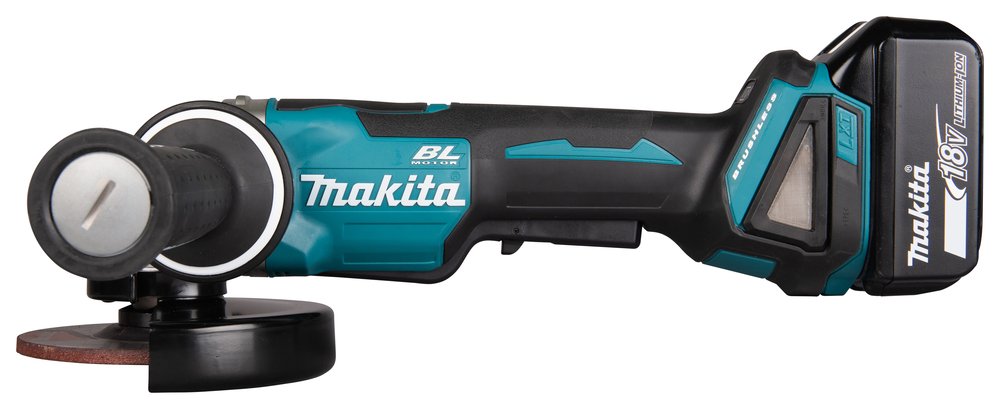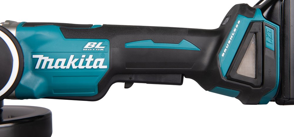 18V • 125 mm • 8. 500 min⁻¹ Interruptor de palanca. Equipada con control de velocidad variable automático. DescripciónAmoladora angular sin escobillas con una disco de 125 mm para profesionales. Electrónica de velocidad constante, protección de sobrecarga, freno de disco de acción rápida para mayor seguridad y empuñadura lateral antivibratoria AVT. Equipada con un interruptor de seguridad en la parte inferior. Sólo herramienta, batería y cargador no incluidos. Beneficios del usuarioArranque suave para una puesta en marcha sin problemasDiseño delgado del cuerpo para un buen agarre. El indicador LED de 3 niveles indica el nivel de carga de la batería / sobrecalentamiento / sobrecargaEl interruptor de seguridad inferior es rápido y seguro de usar. El sistema de protección de la batería corta automáticamente la alimentación cuando el nivel de la batería es bajoFreno eléctrico para máxima productividad y mayor seguridad del operadorLa función anti-restart minimiza los arranques accidentalesLa protección electrónica contra sobrecargas protege al usuario y a la herramienta. La tecnología ADT (Automatic torque Drive Technology) ajusta la velocidad y el par durante el funcionamiento para un rendimiento óptimoMotor sin escobillas, sin mantenimiento y de larga duraciónEspecificaciones técnicasTensión LXT, 1Tensión nominal de la batería, 18 VVelocidad sin carga, 8500 min⁻¹Máx. Profundidad de corte, 29 mmRosca del eje, M14Tamaño del orificio (diámetro del orificio), 22, 23 mmSistema Anti-Restart (Interruptor NVR), 1Interruptor de hombre muerto (sin bloqueo), 1Freno eléctrico, 1Diámetro del disco, 125 mmNivel de potencia sonora (LWA), 91 dB(A)Nivel de presión sonora (LpA), 83 dB(A)Incertidumbre del ruido (Factor K), 3 dB(A)Peso de la herramienta con batería, 2, 4 – 2, 6 kgDimensiones de producto (L x W x H), 362x140x151 mmNivel de vibración, lijado con disco, ≤ 2, 5 m/s²Incertidumbre de vibración (Factor K), lijado con disco, 1, 5 m/s²Nivel de vibración, rectificado de superficies, 6, 0 m/s²Incertidumbre de vibración (Factor K), rectificado de superficies, 1, 5 m/s²Motor sin escobillas, 1Otras características relevantesArranque suave Freno eléctrico Recogida de polvo Sistema antirestartADT AFT Freno eléctrico LXT Litio-Ion Motor sin escobillas Tecnología de protección extrema XPTEquipo básicoA-80656, Disco abrasivo 125×6 mm123145-8, Protector de disco sin herramientas, 125 mm194514-0, Empuñadura 115 – 150 mm, AVT199710-5, Protector de disco 125 mm224447-6, Brida interna