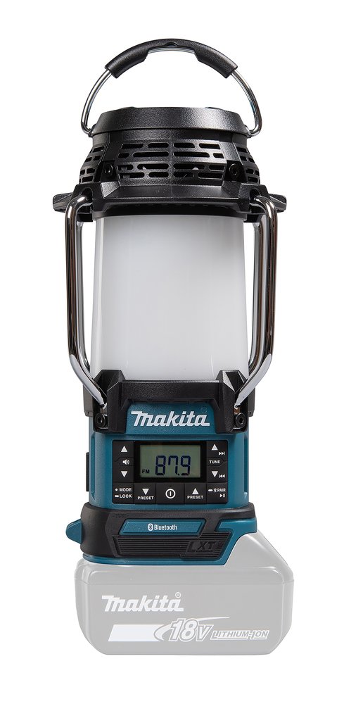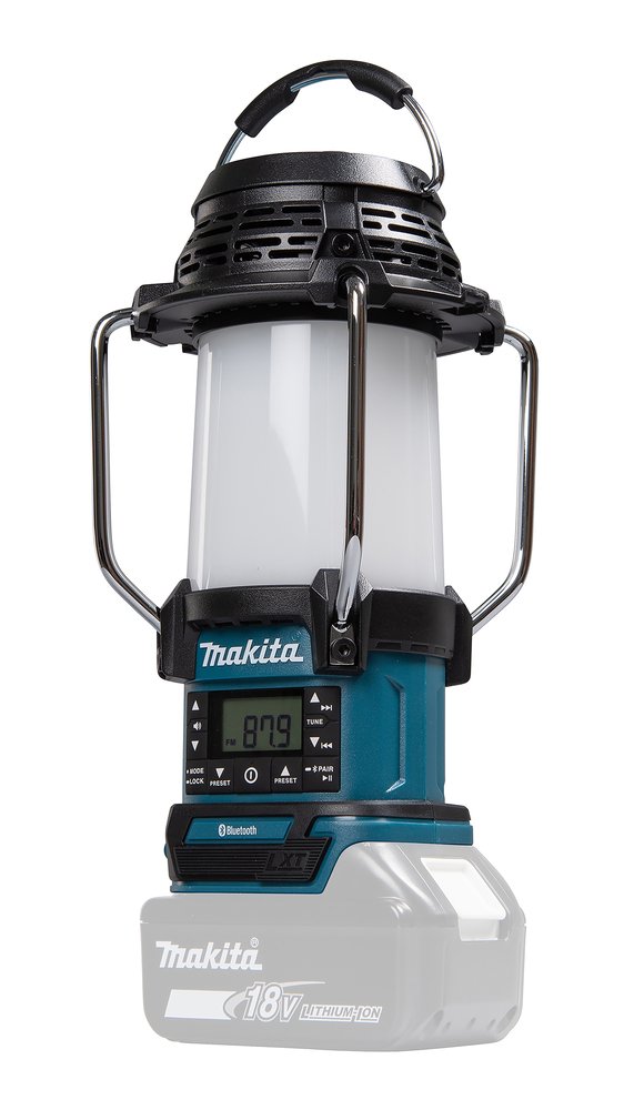 14, 4V / 18V • 145 lx Múltiples funciones, Radio FM, linterna, puerto de salida USB, altavoz Bluetooth. DescripciónDMR057 es una linterna / radio multifunción (360˚ cubierta de luz), radio FM / AM. Lámpara de camping DMR057 de Makita funciona con baterías LXT® de 14, 4V o 18V. Puede sujetarse lateralmente con un gancho de correa o colocarse normalmente como una linterna. La radio está equipada con pantalla digital LCD para que sea muy claro seleccionar la frecuencia. El protector de lente también funciona como antena FM. Los altavoces de 57 mm proporcionan un sonido rico y claro. La tecnología XPT (eXtreme Protection Technology) hace que esta linterna sea resistente al agua y al polvo, por lo que también se puede utilizar en condiciones adversas. La autonomía continua de la BL1860B es de 19 h con la linterna (cobertura luminosa de 360˚) y de 63 h sólo con la radio. La iluminancia con el modo linterna, 4 lados (360˚ de cobertura luminosa) es de 145 lx (310 lm). La iluminancia con el modo linterna, 4 lados (cobertura luminosa de 360˚) es de 130 lx (260 lm). Beneficios del usuarioFunción de memoria – con 9 emisoras de radio presintonizadasGancho plegableEspecificaciones técnicasTensión nominal de la batería, 14, 4 / 18 VTensión LXT, 1Rango de frecuencias FM, 87, 5 – 108 MHzFlujo luminoso, 310 / 95 LumenLuminosidad, 1000 / 145 / 55 lxBatería de uso continuo de 18 V / 5, 0 Ah, 12 / 16 / 30 hBatería de uso continuo de 18V / 6, 0 Ah, 14 / 19 / 37 hPeso de la herramienta con batería, 1, 3 – 1, 6 kgDimensiones de producto (L x W x H), 126x129x289 mmBatería de uso continuo de 14, 4V / 3, 0 Ah, 5, 5 / 7 / 24 hBatería de uso continuo de 18V / 3, 0 Ah, 6, 5 / 8, 5 / 16 hBluetooth, 1Química de la batería (Ni-Cd / Ni-MH / Li-ion), Li-ionPotencia de salida del altavoz 18V, 3 WTemperatura de color, 2500 / 3500 / 5000 KOtras características relevantesBluetooth LXT Litio-Ion Tecnología de protección extrema XPTEquipo básicoSE00001178, Gancho