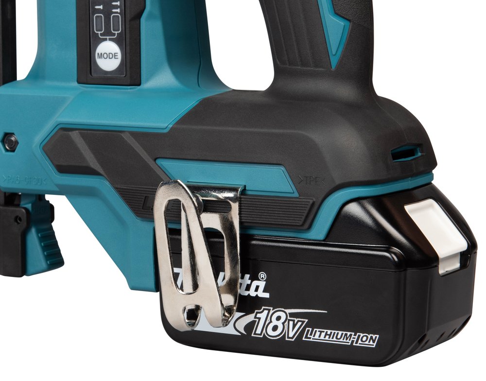 18V • 9, 5 – 38 mm Grapadora de corona estrecha compatible con grapas de corona estrecha de calibre 18. DescripciónLa DST630 es una grapadora LXT® de 18V versátil y potente, diseñada para uso profesional. Esta herramienta ofrece una eficiencia y comodidad excepcionales, ya que elimina la necesidad de utilizar un compresor o mangueras. No incluye ni batería ni cargador. Equipada con un mecanismo de resorte neumático, ofrece una sensación similar a la de las grapadoras neumáticas, clavando grapas de corona estrecha de calibre 18 hasta 38 mm de profundidad en materiales resistentes como LVL. Cuando se combina con la batería BL1850B, puede disparar hasta 6, 2 tiros por segundo, lo que aumenta significativamente la productividad en el lugar de trabajo. El selector de modo dual permite a los usuarios elegir entre los modos de disparo secuencial o continuo, lo que proporciona flexibilidad para diversas tareas. Su diseño de punta delgada mejora la visibilidad y la precisión durante la colocación de las grapas. Además, el mecanismo antidisparo en seco protege la herramienta y la superficie de trabajo bloqueando el brazo de contacto cuando el recuento de grapas se encuentra entre 5 y 7, lo que evita el disparo en seco. Cuenta con un sencillo dial de ajuste de profundidad, que permite realizar modificaciones rápidas en diferentes aplicaciones de acabado sin necesidad de herramientas adicionales. En caso de atasco, las grapas se pueden retirar fácilmente sin herramientas, lo que minimiza el tiempo de inactividad. Para garantizar la visibilidad en espacios con poca luz, una luz LED incorporada ilumina el área de trabajo. El mango está diseñado con un agarre suave para mayor comodidad durante el uso prolongado, lo que reduce la fatiga. Además, con la tecnología XPT. Beneficios del usuarioEmpuñadura ergonómica de agarre suave para mayor comodidadTecnología de protección extrema (XPT) diseñada para ofrecer una mayor resistencia al polvo y al agua en las duras condiciones del lugar de trabajo. Especificaciones técnicasTensión LXT, 1Tensión nominal de la batería, 18 VAnchura de la corona de grapas, 5, 7 – 6, 35 mmMedidas de la grapa, 5, 7 – 6, 35×9, 5 – 38 mmCalibre de atornillado, 18 GaCapacidad del cargador de tornillos, 110Peso neto del producto, 2, 5 kgNivel de presión sonora (LpA), 79 dB(A)Incertidumbre del ruido (Factor K), 3 dB(A)Peso de la herramienta con batería, 2, 8 – 3, 1 kgDimensiones de producto (L x W x H), 246x96x282 mmNivel de vibración (3 ejes), ≤ 2, 5 m/s²Incertidumbre de vibración (Factor K), 1, 5 m/s²Gama de grapas, 9, 5 – 38 mmAjuste de profundidad, 1Otras características relevantesAjuste de profundidad Detención automática de disparo Disparo secuencial Luz de trabajo incorporada Sistema antirestartLXT Litio-Ion Motor sin escobillas Tecnología de protección extrema XPTEquipo básico346317-0, Gancho para cinturón