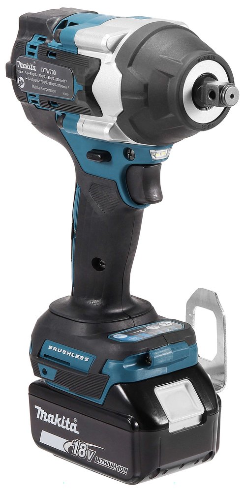 18V • 1/2″ • 700 Nm • 0 – 2. 200 min⁻¹ 3 modos de tiempo de reacción para la parada automática disponible tanto en los modos de rotación hacia adelante y hacia atrásDescripciónLlave de impacto de 1/2″ sin escobillas con un par de apriete de hasta 700 Nm. Equipada con doble luz LED para mayor iluminación, esta herramienta es ideal para aplicaciones que requieren un alto par de apriete. La nueva Llave de impacto LXT® DTW700 de Makita es una herramienta de alto par con un diseño compacto. Su motor sin escobillas ofrece un par de apriete máximo de 700 Nm y un par de apriete de tuercas de hasta 1000 Nm. El cuadrado de accionamiento del DTW700 1/2″ tiene una inserción de accionamiento por anillo de fricción. la herramienta está equipada con dos LEDs de luz para iluminar el trabajo en entornos oscuros. Esta Llave de impacto está equipada con el modo Auto-stop, 3 modos de tiempo de reacción para la parada automática que están disponibles tanto para la rotación hacia atrás y hacia adelante. El modo Auto-Stop es una característica excelente para múltiples situaciones, por ejemplo cuando se sujeta a un determinado nivel de par o se abren varios pernos a la vez. En el modo de velocidad máxima, el recorrido del gatillo es más corto para reducir la fatiga del operario. Beneficios del usuario3 modos de tiempo de reacción para la parada automática disponibles tanto en modo de rotación hacia delante como hacia atrásEl diseño ergonómico del chasis garantiza una buena posición de trabajo. El sistema de protección de la batería corta automáticamente la alimentación cuando el nivel de la batería es bajoLa luz LED ilumina el lugar de trabajoMotor sin escobillas, sin mantenimiento y de larga duraciónTecnología de protección extrema (XPT) diseñada para ofrecer una mayor resistencia al polvo y al agua en las duras condiciones del lugar de trabajo. Especificaciones técnicasTensión LXT, 1Tensión nominal de la batería, 18 VQuímica de la batería (Ni-Cd / Ni-MH / Li-ion), Li-ionVelocidad sin carga, 0 – 500 / 1200 / 1900 / 2200 min⁻¹Máx. par de aprieta atornillador impacto, 150 / 200 / 320 / 700 NmPar de desapriete, 1000 NmCapacidad de apriete Tornillo estándar, M10 – M24Impactos por minuto (IPM), 0 – 1000 / 1700 / 2400 / 2700 min⁻¹Inserción cuadradillo, 1/2 «Nivel de potencia sonora (LWA), 105 dB(A)Nivel de presión sonora (LpA), 94 dB(A)Peso neto del producto, 2, 0 kgIncertidumbre del ruido (Factor K), 3 dB(A)Peso de la herramienta con batería, 2, 3 – 2, 7 kgDimensiones de producto (L x W x H), 170x81x276 mmNivel de vibración, apriete con impacto para fijación a la capacidad máxima de la herramienta, 19, 0 m/s²Incertidumbre de Vibración (Factor K), apriete con impacto para fijación a la capacidad máxima de la herramienta, 2, 0 m/s²Motor sin escobillas, 1Otras características relevantes4 velocidades eléctricas Freno eléctrico Luz de trabajo incorporada Reversible Velocidad variableLXT Litio-Ion Motor sin escobillas Tecnología de protección extrema XPTEquipo básico837645-9, MakPac (3) Interior821551-8, Maletín Makpac (3)251314-2, Tornillo M4x12450128-8, Funda para baterías, LXT®, 14, 4V – 18V