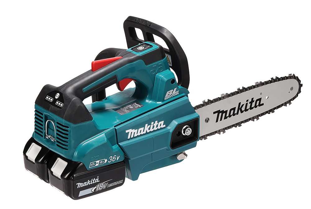 18V x2 • 20 m/s • 25 cm Sierra de cadena con motor BL sin escobillas con alta velocidad de cadena para podar y tallarDescripciónPotente sierra sin cable con motor sin escobillas y velocidad de cadena de 20 m/s. Potencia extra para hasta 60 s está disponible para cortar ramas gruesas. Equipada con brida de 10″. Versión del cuerpo sin batería y cargador. Beneficios del usuarioEl sistema de protección de la batería corta automáticamente la alimentación cuando el nivel de la batería es bajoFreno eléctrico para máxima productividad y mayor seguridad del operadorLubricación automática ajustable de la cadena con gran depósito de aceiteMotor sin escobillas, sin mantenimiento y de larga duraciónRendimiento de 36 V a partir de dos baterías de 18 V conectadas en serie. Las baterías se colocan en paralelo en estaciones de acoplamiento independientes. Especificaciones técnicasTensión LXT, 1Tensión nominal de la batería, 2×18 VQuímica de la batería (Ni-Cd / Ni-MH / Li-ion), Li-ionDepósito de aceite de cadena, 200 mlMax. Velocidad de la cadena (sin carga), 20, 0 m/slongitud de la barra de la cadena, 250 mm (10″)Paso de cadena, 3/8 / 0, 325 «Calibre de la cadena, 0, 043 «Calibre de la cadena, 1, 1 mmNúmero de enlaces de transmisión, 40 / 46Nivel de potencia sonora (LWA), 103 dB(A)Peso neto del producto, 2, 8 kgNivel de presión sonora (LpA), 95 dB(A)Incertidumbre del ruido (Factor K), 3 dB(A)Peso de la herramienta con batería, 4, 6 – 5, 1 kgNivel de vibración, corte de madera, 3, 6 m/s²Incertidumbre de vibración (Factor K), corte de madera, 1, 5 m/s²Dimensiones de producto (L x W x H), 270x205x232 mmMotor sin escobillas, 1Otras características relevantesArranque suave Engrase automático Freno de cadena Freno eléctrico Velocidad variable18V+18V=36V LXT Litio-Ion Motor sin escobillas Tecnología de protección extrema XPTEquipo básico191G14-3, Guía de estrella, 191H00-0, Cadena, 3/8», 1, 1 mm, 25 cm, 90PX452093-7, Funda protectora de cadena 28 cm. 782023-7, Llave fija 13 -16