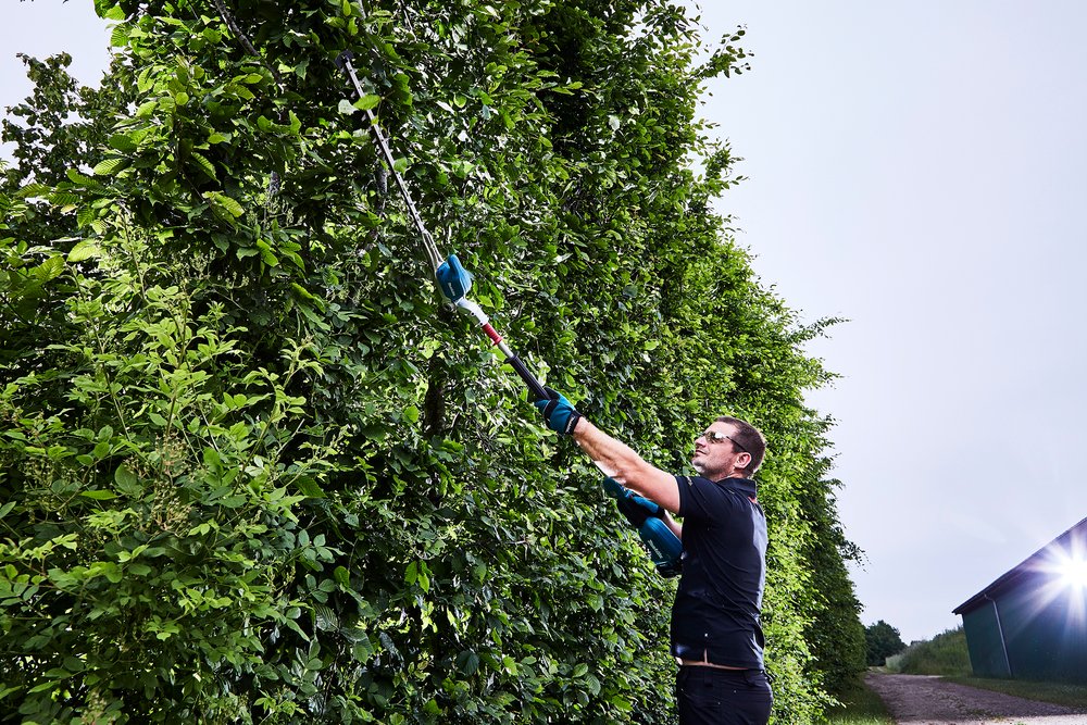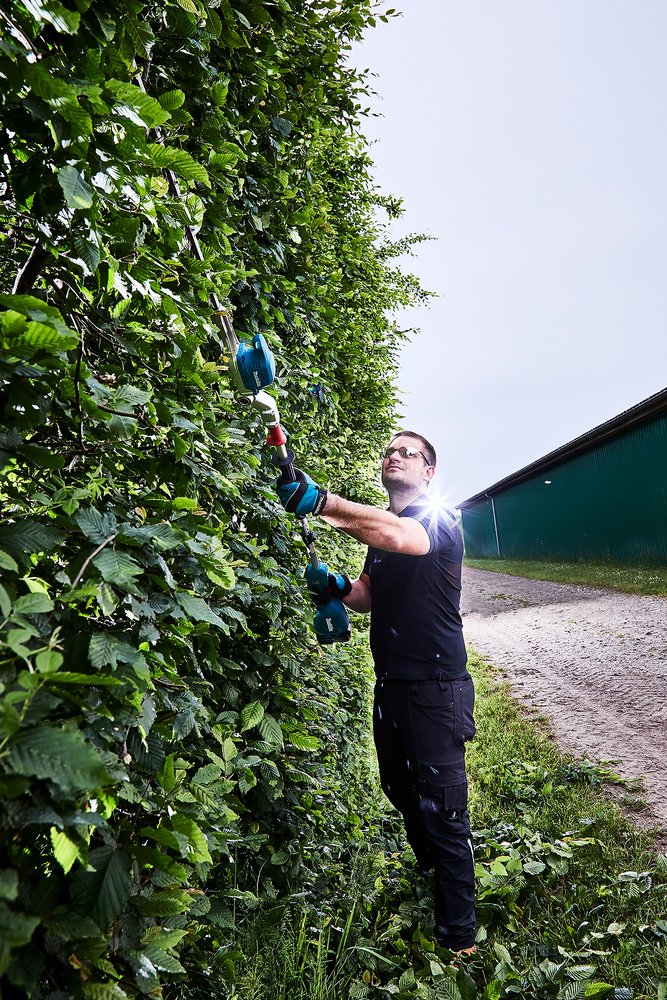 18V • 500 mm • 2. 000 – 4. 400 minˉ¹ Cortasetos con motor BL sin escobillas. Muy ligero. DescripciónEl cortasetos con motor BL sin escobillas con eje largo es muy adecuado para cortar setos altos y largos. la cuchilla se articula 115 grados, lo que facilita el corte de las copas de los arbustos. la cuchilla se puede plegar en la posición de transporte para un total de 180 grados. Beneficios del usuarioEl diseño estrecho del mango garantiza un excelente manejoEl sistema de protección de la batería corta automáticamente la alimentación cuando el nivel de la batería es bajoFreno eléctrico para máxima productividad y mayor seguridad del operadorMotor sin escobillas, sin mantenimiento y de larga duraciónTecnología de protección extrema (XPT) diseñada para ofrecer una mayor resistencia al polvo y al agua en las duras condiciones del lugar de trabajo. Especificaciones técnicasTensión LXT, 1Tensión nominal de la batería, 18 VVelocidad sin carga, 1000 / 1800 / 2000 min⁻¹Golpes por minuto (SPM), 2000 / 3600 / 4400 min⁻¹Máx. Espesor de rama, 23, 5 mmBatería de uso continuo de 18V / 6, 0 Ah, 60 / 90 / 190 minNivel de potencia sonora (LWA), 92, 5 dB(A)Nivel de presión sonora (LpA), 81, 5 dB(A)Peso neto del producto, 3, 6 kgIncertidumbre del ruido (Factor K), 3 dB(A)Peso de la herramienta con batería, 3, 9 – 4, 3 kgDimensiones de producto (L x W x H), 2115x97x137 mmRango ángulo vertical, 115 ºNivel de vibración, recorte de setos, 4, 7 / 2, 5 m/s²Incertidumbre de la vibración (Factor K), recorte de setos, 1, 5 m/s²Longitud de la cuchilla, 500 mmMotor sin escobillas, 1Otras características relevantes3 velocidades eléctricas Freno eléctrico Reversible Velocidad constanteLXT Litio-Ion Motor sin escobillas Tecnología de protección extrema XPTEquipo básico125516-5, Arnés191C14-9, Cuchilla de corte, 500 mm
