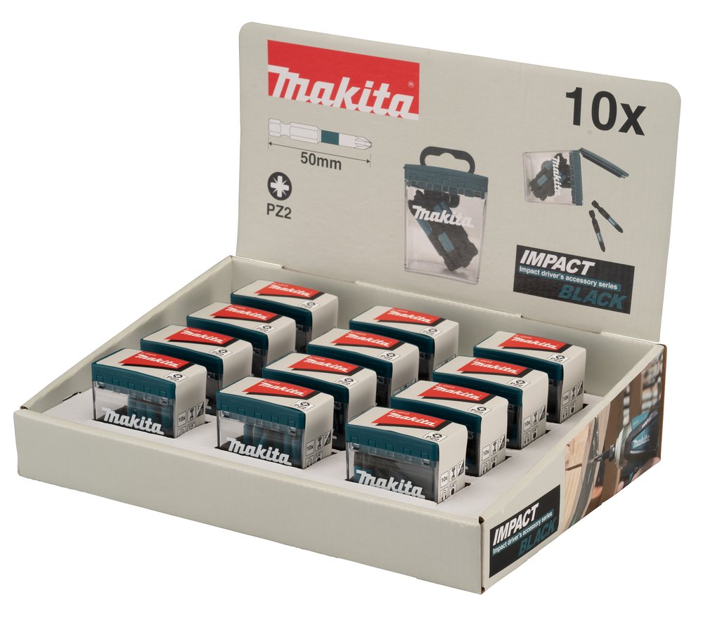 12 Punta Impact Black, PZ2, 50 mm, 10 Pcs X 12 Sets MAKITA.