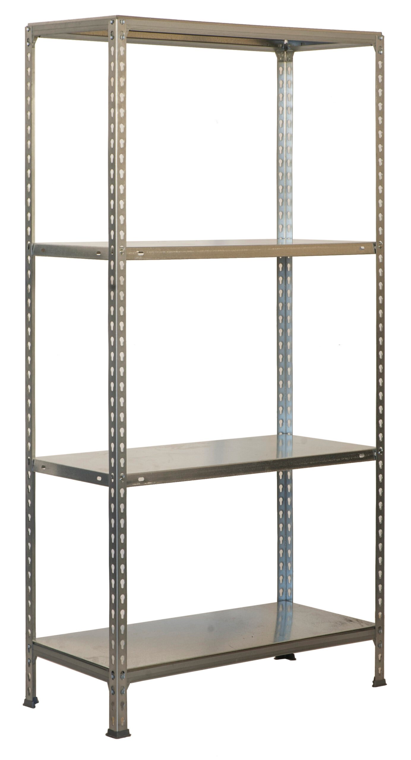 Estanteria metalica sin tornillos, de color GALVANIZADO. Tiene 4 estantes. Las dimensiones de esta estanteria son, 1500x900x300 mm. Y tiene una capacidad de carga de 70 kgs los estantes intermedios y 150 kgs los estantes superior e inferior. Es fabricado en Europa por Simonrack y se monta rapido siguiendo las instrucciones