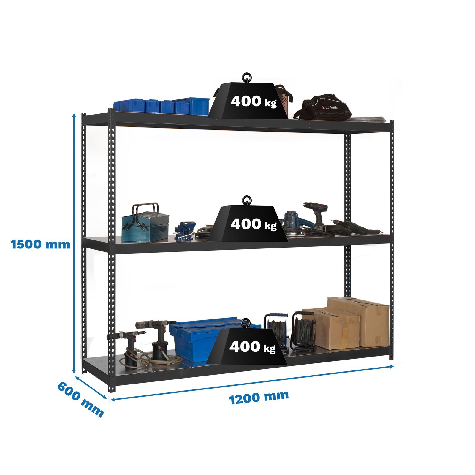 Ecoforte 1206-3 METAL 1500 Antracita/galva Simonrack 1500X1200X600 Mm. ECOFORTE 1206-3 Metal 1500 Antracita/Galva SIMONRACK. Estanteria media carga sin tornillos Ecoforte 1500x1200x600 mm. De color ANTRACITA/GALVA. La capacidad de carga es de 400 kgs. Incluye bandejas de metal. Y tiene 3 estantes. Producto de uso profesional y suministro técnico. Datos verificados: Dimensiones aprox.: 1500 cm x 1200 cm x 600 cm. Categoría: Equipamiento de Almacenamiento.