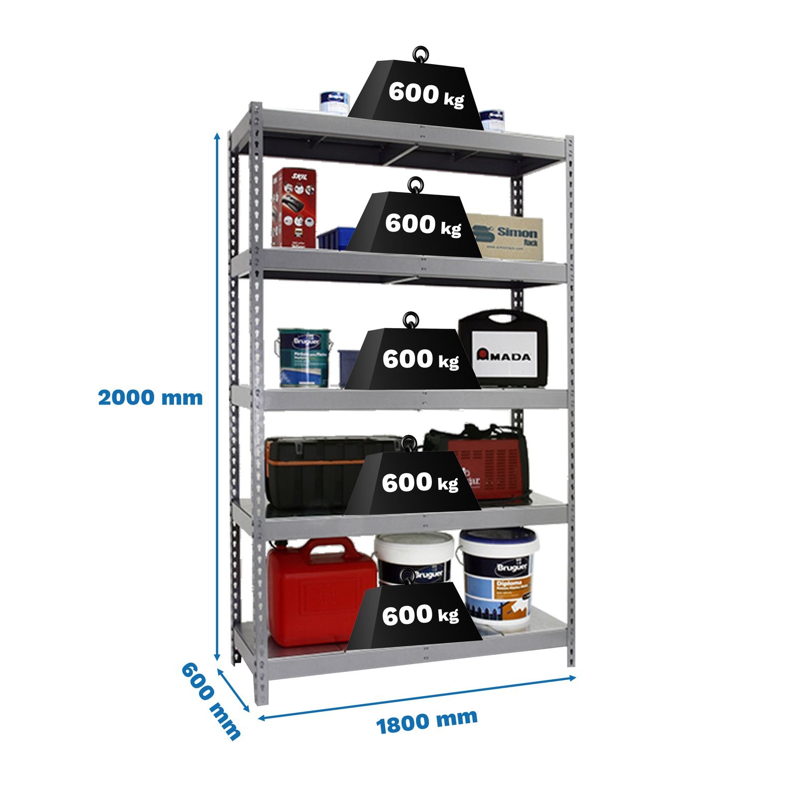 Estanteria metalica media carga de color gris/galva con 5 estantes. Tiene una capacidad de carga por estante de 400 kg y una capacidad total de 2000 kgs. Con unas medidas en mm de 2000x1200x600. Incluye bandejas de Metal. Fabricada en Europa por Simonrack y se monta rapido siguiendo las instrucciones