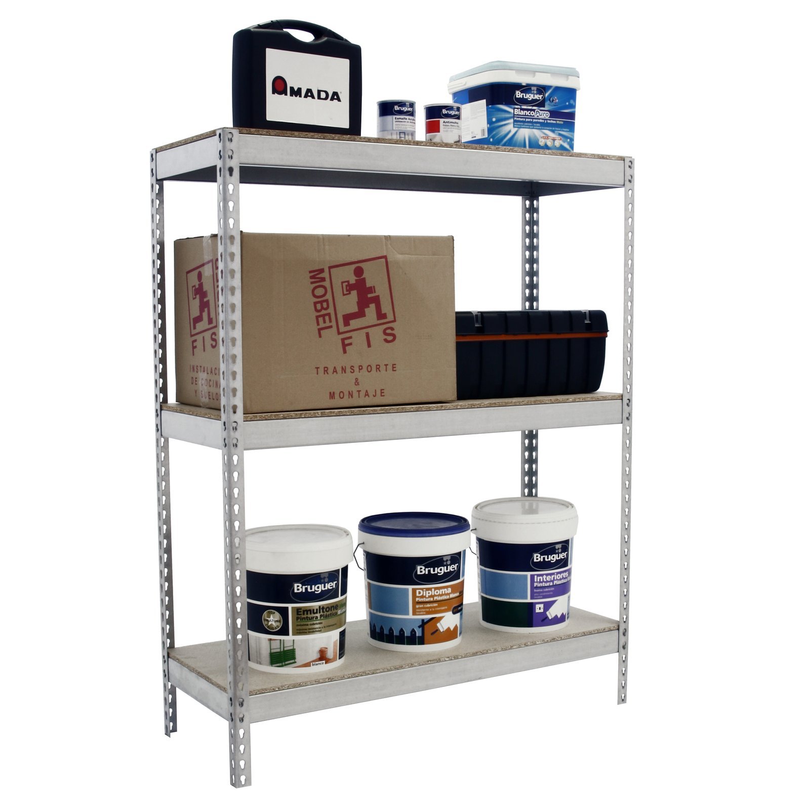 Estanteria metalica media carga de color galva/madera con 3 alturas. Tiene una capacidad de carga por estante de 400 kg y una capacidad total de 1200 kgs. Con unas medidas en mm de 1500x1200x750. Incluye 3 bandejas de aglomerado. Fabricada en Europa por Simonrack y se monta rapido siguiendo las instrucciones