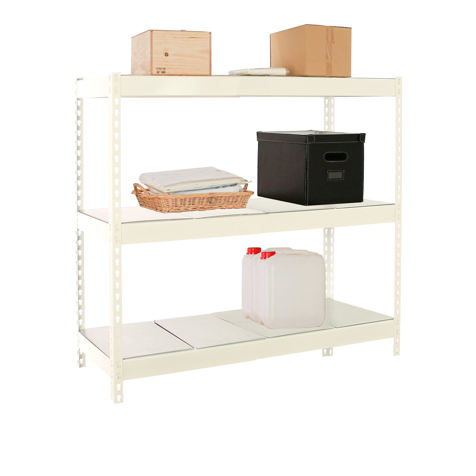 Estanteria metalica media carga de color blanco/galva con 3 alturas. Tiene una capacidad de carga por estante de 400 kg y una capacidad total de 1200 kgs, carga certificada a punto de flexion, no de rotura. Con unas medidas en mm (alto x ancho x fondo) de 1500x1200x750. Incluye bandejas de metal. Fabricada en Europa por Simonrack y se monta rapido siguiendo las instrucciones. Sistema de montaje facil y rapido sin tornillos. Con recubrimiento epoxi poliester antirayaduras e ignifugo. No se tambalea. No contiene aristas de corte, manipulacion sin riesgo