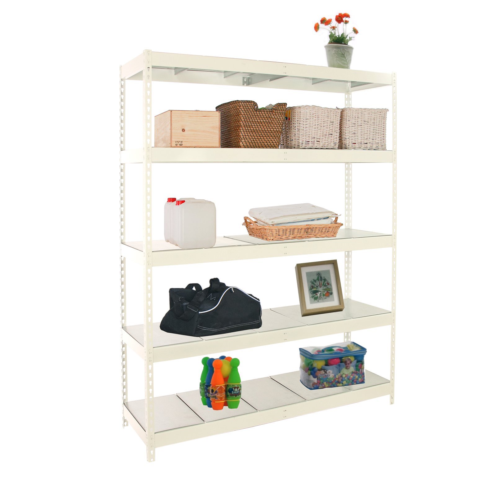 Estanteria metalica sin tornillos, de color blanco con capacidad de carga por estante de 400 kg. El numero de estantes es 5 y las medidas (alto x ancho x fondo) son 2000x1500x600 mm. Incluye estantes de metal. Producto europeo, calidad europea, podras encontrar las instrucciones de montaje en su interior o en este enlace, https, //www. youtube. com/watch?v=Q84CvDjhQ6Y. Medidas en uso del producto, 1975x1510x610 mm