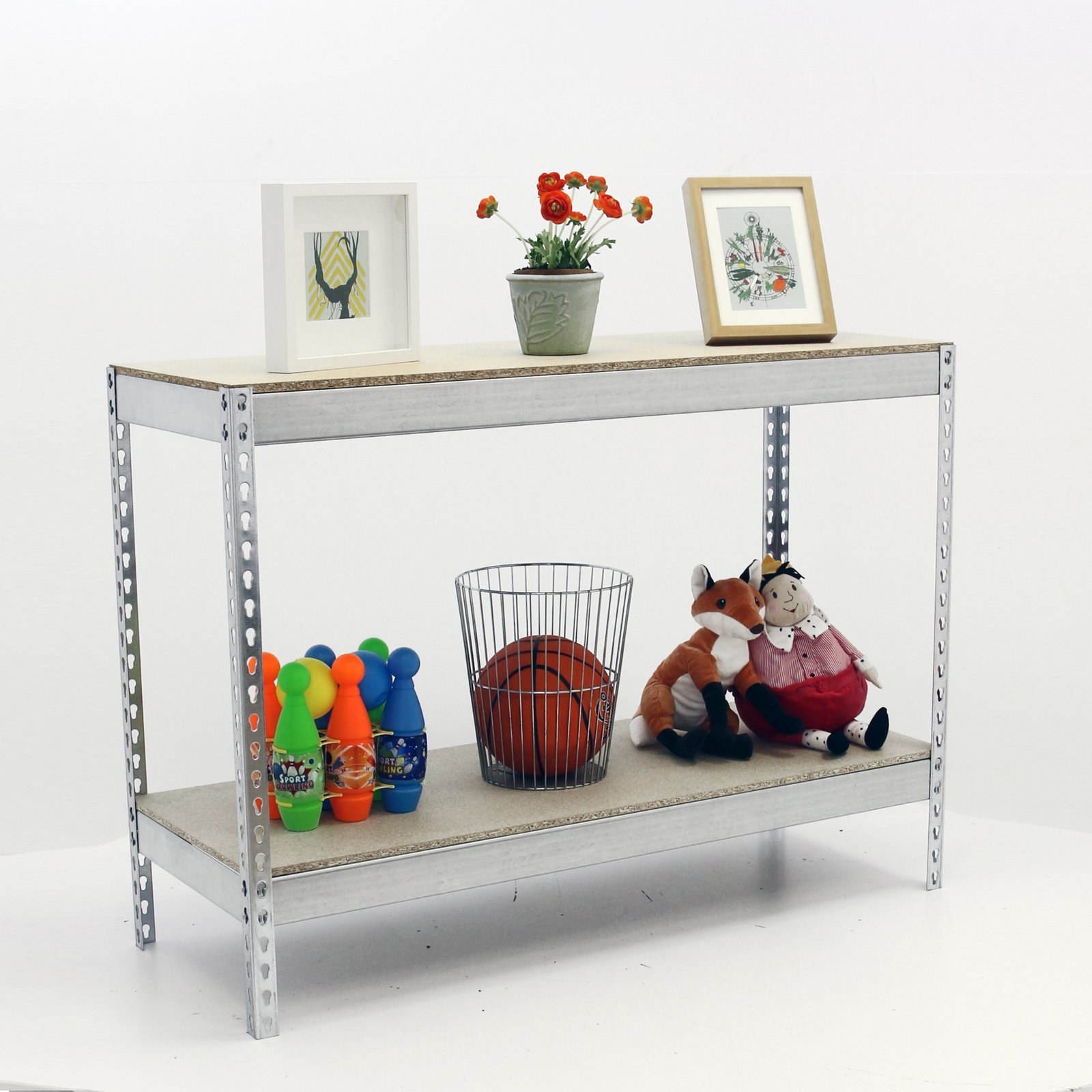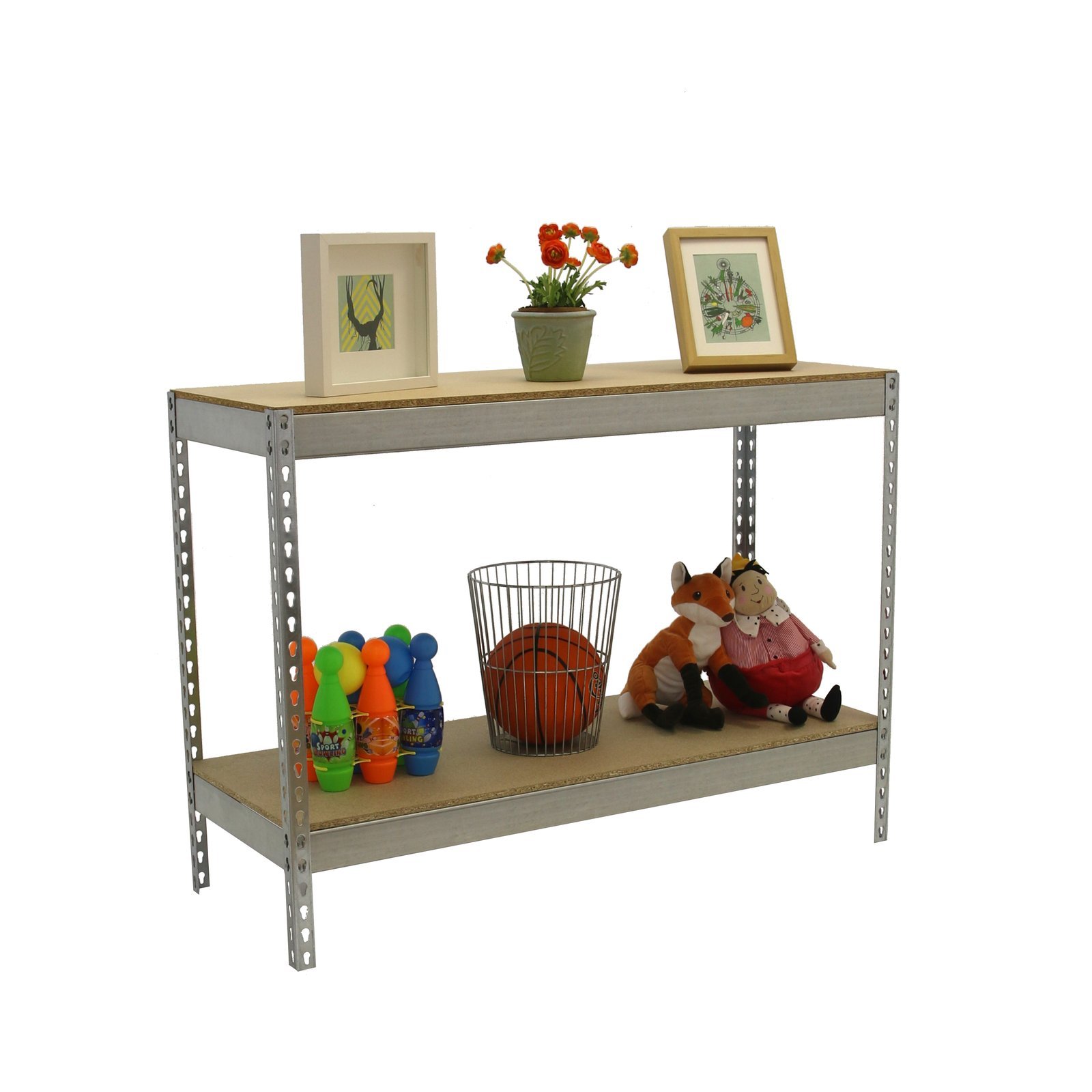 Estanteria metalica media carga de color galva/madera con 2 alturas. Contiene 4 baldas de aglomerado, 2 baldas para cada altura, una de las baldas mas larga que la otra. Tiene una capacidad de carga por estante de 400 kg y una capacidad total de 800 kgs. Con unas medidas en mm de 900x1500x750. Fabricada en Europa por Simonrack y se monta rapido siguiendo las instrucciones. Incluye 1 refuerzo por altura