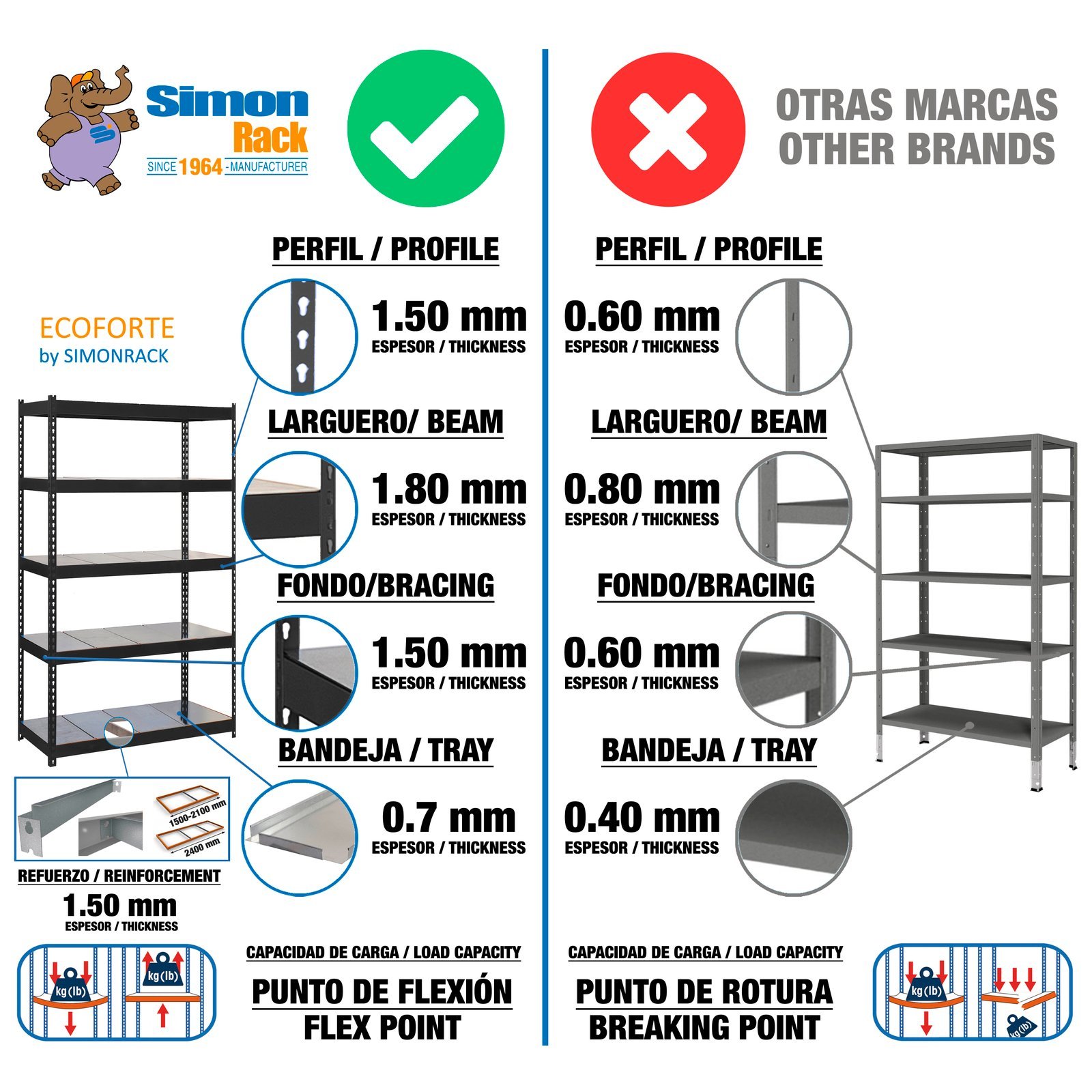 Ecoforte 1507-3 METAL 1500 Antracita/galva Simonrack 1500X1500X750 Mm. ECOFORTE 1507-3 Metal 1500 Antracita/Galva SIMONRACK. Estanteria media carga sin tornillos Ecoforte 1500x1500x750 mm. De color ANTRACITA/GALVA. La capacidad de carga es de 400 kgs. Incluye bandejas de metal. Y tiene 3 estantes. Producto de uso profesional y suministro técnico. Datos verificados: Dimensiones aprox.: 1500 cm x 1500 cm x 750 cm. Categoría: Equipamiento de Almacenamiento.