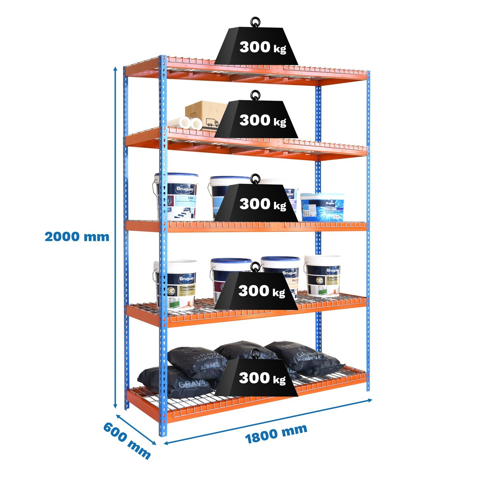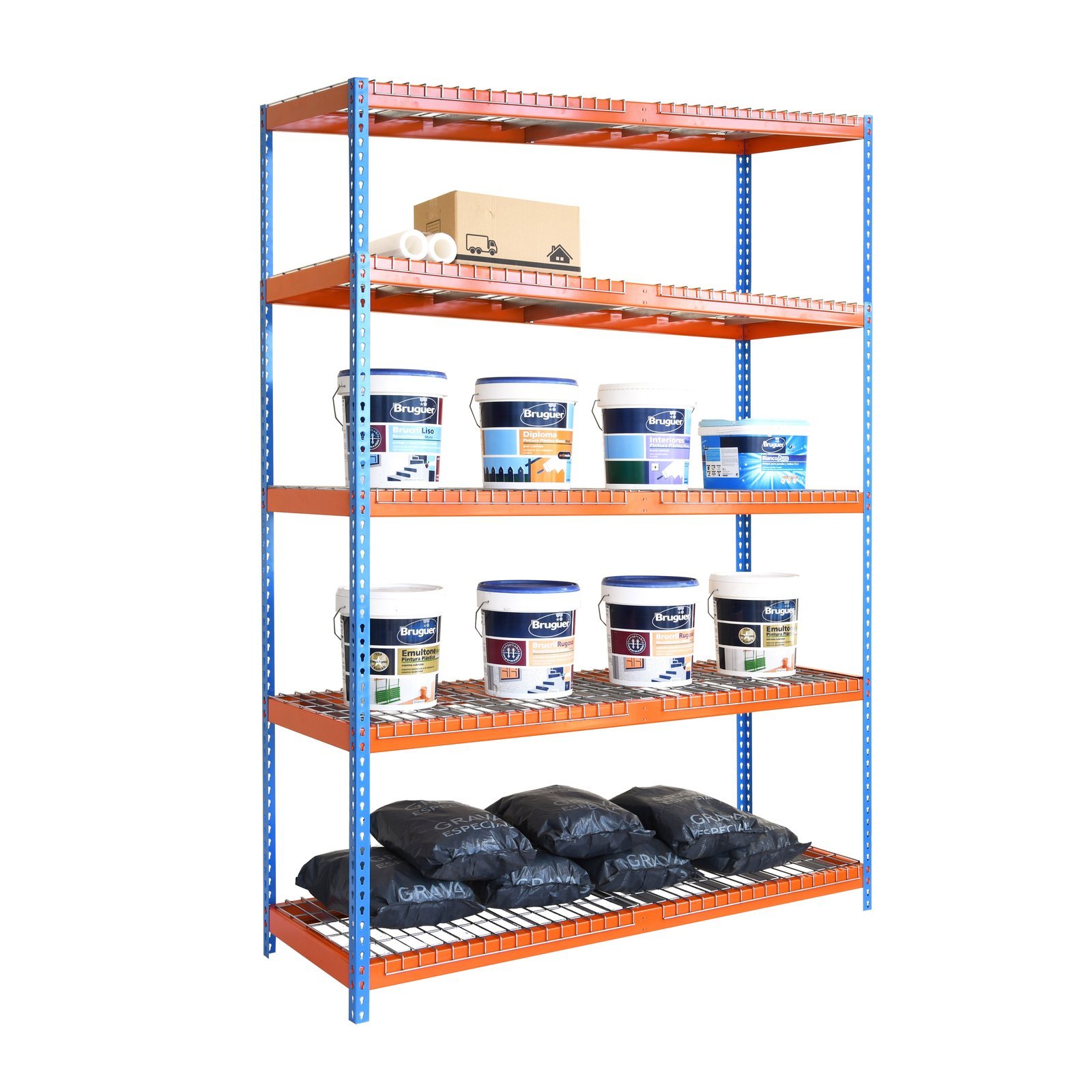 Estanteria metalica media carga, de color naranja con 5 estantes. Tiene una capacidad de carga por estante de 300 kg y una capacidad total de 1500 kgs. Con unas medidas en mm de. Fabricada en Europa por Simonrack y se monta rapido siguiendo las instrucciones