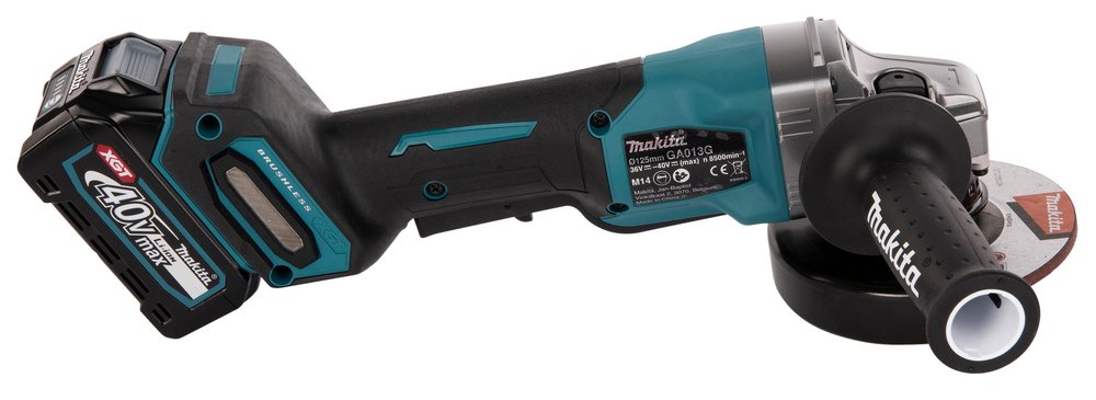 40Vmax • 125 mm • 8. 500 min⁻¹ Eficaz herramienta con motor BL sin escobillas y con interruptor de pala para cortar y rectificarDescripciónMiniamoladora compacta, con motor BL sin escobillas, con interruptor de pala y 125 mm de diámetro de disco para un uso profesional exigente. la máquina cuenta con electrónica de serie, freno electrónico, protección contra sobrecarga y tecnología de detección de retroalimentación AFT-activa. sólo herramienta, batería y cargador no incluidos. La GA013G es una amoladora sin cable de última generación, que puede igualar la potencia de las amoladoras con cable de 1000 W. Puede alcanzar una velocidad sin carga de 8500 min-¹, por lo que puede sentir realmente su potencia al rectificar. Trabajar con la GA013G es cómodo y seguro. La nueva cubierta de la rueda sin herramientas permite un rápido ajuste del ángulo y su interruptor de palanca situado en la empuñadura fácil de sujetar añade comodidad a la máquina. La tecnología de detección de retroalimentación activa (AFT) apaga la herramienta si su rotación se ralentiza repentinamente. para mayor seguridad, la máquina cuenta con un freno eléctrico. Una de las principales ventajas de la nueva tecnología XGT® es que proporciona una capacidad extrema. Con la GA013G, la cantidad de trabajo es de 7 m cuando se cortan 20 mm de profundidad mientras se utiliza una batería de 4, 0 Ah. las nuevas baterías también se cargan rápidamente, por lo que se puede hacer mucho sin largas pausas. Beneficios del usuarioArranque suave para una puesta en marcha sin problemasDiseño delgado del cuerpo para un buen agarre. El sistema de protección de la batería corta automáticamente la alimentación cuando el nivel de la batería es bajoFreno eléctrico para máxima productividad y mayor seguridad del operadorLa empuñadura lateral puede colocarse a ambos lados para mayor comodidad del operarioLa tecnología de detección de retroalimentación activa (AFT) detiene el motor si la rotación se detiene repentinamenteMotor sin escobillas, sin mantenimiento y de larga duraciónTecnología de protección extrema (XPT) diseñada para ofrecer una mayor resistencia al polvo y al agua en las duras condiciones del lugar de trabajo. Especificaciones técnicasTensión XGT, 1Tensión nominal de la batería, 40 VVelocidad sin carga, 8500 min⁻¹Máx. Profundidad de corte, 34 mmRosca del eje, M14Tamaño del orificio (diámetro del orificio), 22, 23 mmSistema Anti-Restart (Interruptor NVR), 1Interruptor de hombre muerto (sin bloqueo), 1Freno eléctrico, 1Diámetro del disco, 125 mmNivel de potencia sonora (LWA), 93 dB(A)Nivel de presión sonora (LpA), 85 dB(A)Peso neto del producto, 1, 9 kgIncertidumbre del ruido (Factor K), 3 dB(A)Peso de la herramienta con batería, 3, 2 – 4, 5 kgDimensiones de producto (L x W x H), 410x140x168 mmNivel de vibración, lijado con disco, 3, 0 m/s²Incertidumbre de vibración (Factor K), lijado con disco, 1, 5 m/s²Nivel de vibración, rectificado de superficies, 6, 5 m/s²Incertidumbre de vibración (Factor K), rectificado de superficies, 1, 5 m/s²Motor sin escobillas, 1Otras características relevantesArranque suave Freno eléctrico Recogida de polvo Sistema antirestartAFT Freno eléctrico Motor sin escobillas Next Generation Technology Tecnología de protección extrema XPTEquipo básico158237-4, Empuñadura224447-6, Brida interna347480-2, Protector de disco 125 mm782423-1, Llave de pivotes 35A-80656, Disco abrasivo 125×6 mm