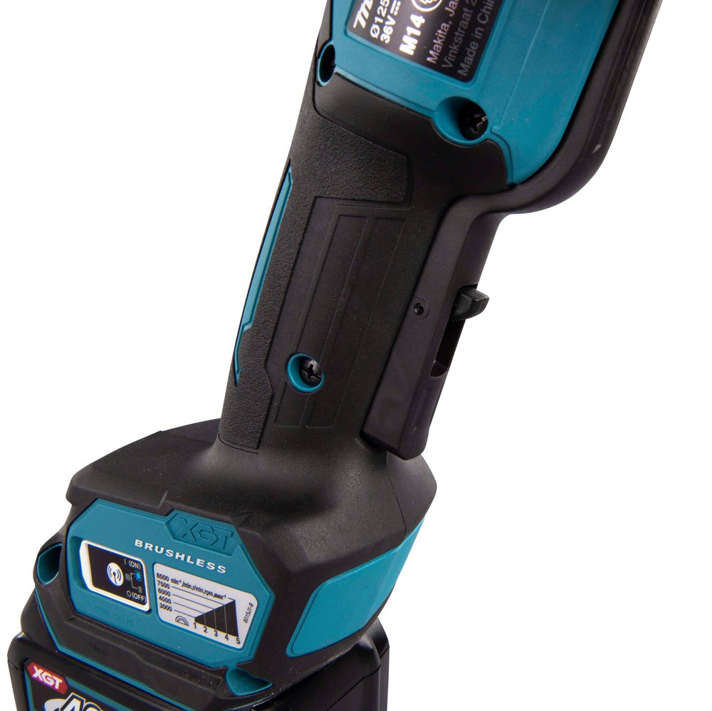 40Vmax • 125 mm • 3. 000 – 8. 500 min⁻¹ Eficiente herramienta con motor BL sin escobillas y con freno para cortar y rectificarDescripciónMiniamoladora con motor BL sin escobillas, con un disco de 125 mm para un uso profesional exigente. Velocidad ajustable de 3 000 – 8 500 min-¹ mediante el dial de control de velocidad variable. Función de arranque del Aspirador a distancia AWS. Sólo herramienta, batería y cargador no incluidos. La GA029G es una amoladora sin cable de última generación, que puede igualar la potencia de las amoladoras con cable de 1 000 W. Dispone de velocidad variable y puede alcanzar de 3. 000 a 8. 500 min-¹ de velocidad sin carga, por lo que puede sentir realmente su potencia al rectificar. Trabajar con la GA029G es cómodo y seguro. La nueva cubierta de la rueda sin herramientas permite ajustar el ángulo rápidamente y su interruptor de palanca situado en la empuñadura fácil de sujetar aumenta la comodidad de la máquina. La tecnología de detección de retroalimentación activa (AFT) apaga la herramienta si su rotación se ralentiza repentinamente. para mayor seguridad, la máquina cuenta con un freno eléctrico. Una de las principales ventajas de la nueva tecnología XGT® es que proporciona una capacidad extrema. Con la GA029G, la cantidad de trabajo es de 7 m cuando se cortan 20 mm de profundidad mientras se utiliza una batería de 4, 0 Ah. las nuevas baterías también se cargan rápidamente, por lo que se puede hacer mucho sin largas pausas. Beneficios del usuarioArranque suave para una puesta en marcha sin problemasEl sistema de protección de la batería corta automáticamente la alimentación cuando el nivel de la batería es bajoFreno eléctrico para máxima productividad y mayor seguridad del operadorLa tecnología de detección de retroalimentación activa (AFT) detiene el motor si la rotación se detiene repentinamenteTecnología de protección extrema (XPT) diseñada para ofrecer una mayor resistencia al polvo y al agua en las duras condiciones del lugar de trabajo. Especificaciones técnicasTensión XGT, 1Tensión nominal de la batería, 40 VVelocidad sin carga, 3000 – 8500 min⁻¹Máx. Profundidad de corte, 34 mmRosca del eje, M14Tamaño del orificio (diámetro del orificio), 22, 23 mmSistema Anti-Restart (Interruptor NVR), 1Interruptor de hombre muerto (sin bloqueo), 1Freno eléctrico, 1Preparado para AWS, 1Diámetro del disco, 125 mmNivel de potencia sonora (LWA), 93 dB(A)Nivel de presión sonora (LpA), 85 dB(A)Peso neto del producto, 1, 9 kgIncertidumbre del ruido (Factor K), 3 dB(A)Peso de la herramienta con batería, 3, 0 – 5, 4 kgDimensiones de producto (L x W x H), 425x140x168 mmNivel de vibración, lijado con disco, 3, 0 m/s²Incertidumbre de vibración (Factor K), lijado con disco, 1, 5 m/s²Nivel de vibración, rectificado de superficies, 6, 5 m/s²Incertidumbre de vibración (Factor K), rectificado de superficies, 1, 5 m/s²Motor sin escobillas, 1Otras características relevantesArranque suave Freno eléctrico Recogida de polvo Sistema antirestart Velocidad variableAFT Freno eléctrico Motor sin escobillas Next Generation Technology Sistema AWS Tecnología de protección extrema XPTEquipo básicoA-80656, Disco abrasivo 125×6 mm158237-4, Empuñadura782423-1, Llave de pivotes 35224447-6, Brida interna347480-2, Protector de disco 125 mm