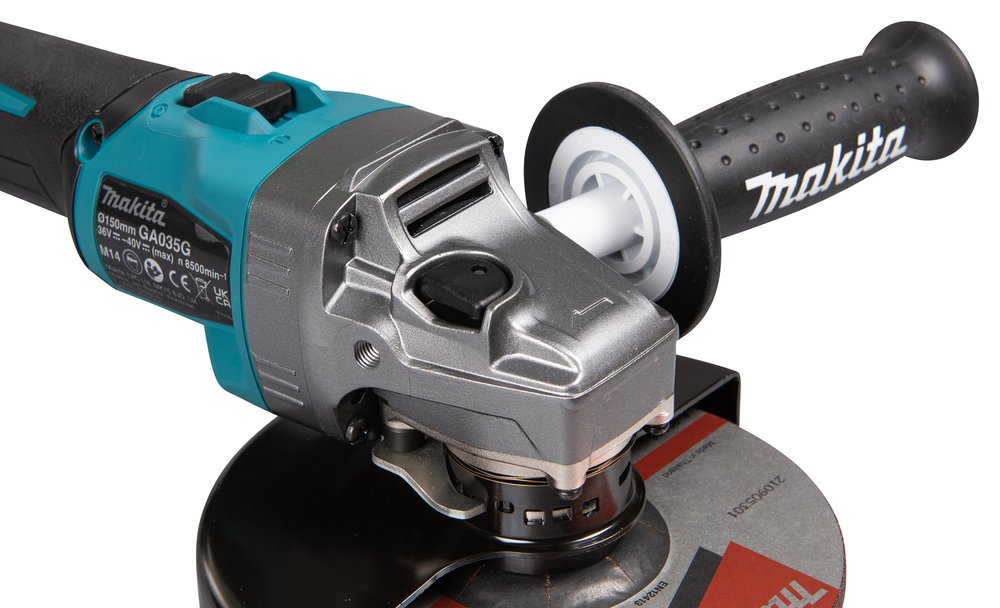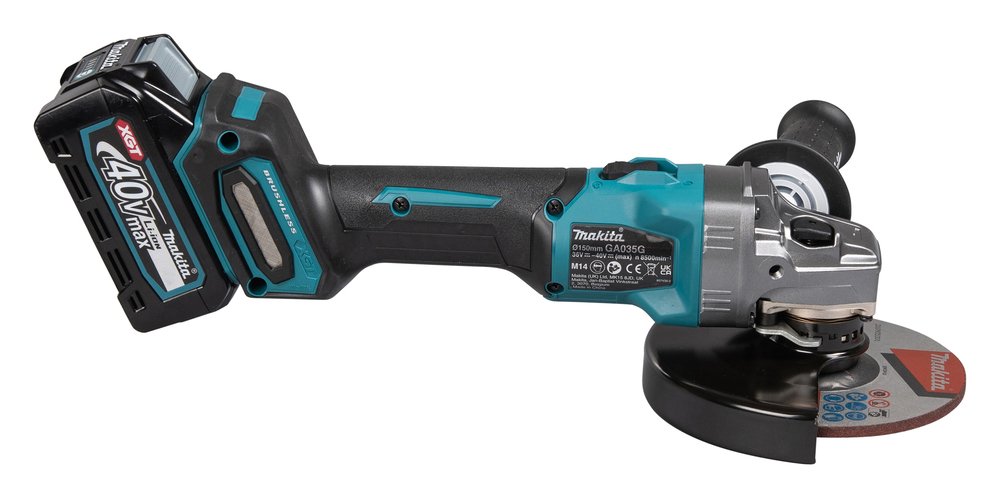 40Vmax • 150 mm • 9000 min⁻¹ Eficiente herramienta con motor BL sin escobillas para cortar y rectificarDescripciónMiniamoladora compacta sin escobillas para uso profesional exigente con un diámetro de disco de 150 mm. la máquina cuenta con electrónica de serie, protección contra sobrecarga y tecnología de detección de retroalimentación AFT-activa. Sólo herramienta, batería y cargador no incluidos. La GA035G es una amoladora sin cable de última generación, que puede igualar la potencia de las amoladoras con cable de 1000 W. Puede alcanzar una velocidad sin carga de 9000 min-¹. La amoladora es la elección perfecta para cortar hormigón con un disco de diamante, por ejemplo. Trabajar con la GA005G es cómodo y seguro. la nueva cubierta de la rueda sin herramientas permite ajustar el ángulo rápidamente y su interruptor deslizante situado en la empuñadura fácil de sujetar aumenta la comodidad de la máquina. La tecnología de detección de retroalimentación activa (AFT) apaga la herramienta si su rotación se ralentiza repentinamente. Una de las principales ventajas de la nueva tecnología XGT® es que proporciona una capacidad extrema. Las nuevas baterías también se cargan rápidamente, por lo que podrá hacer mucho sin necesidad de largas pausas. Beneficios del usuarioArranque suave para una puesta en marcha sin problemasDiseño delgado del cuerpo para un buen agarre. El sistema de protección de la batería corta automáticamente la alimentación cuando el nivel de la batería es bajoMotor sin escobillas, sin mantenimiento y de larga duraciónTecnología de protección extrema (XPT) diseñada para ofrecer una mayor resistencia al polvo y al agua en las duras condiciones del lugar de trabajo. Especificaciones técnicasTensión XGT, 1Tensión nominal de la batería, 40 VVelocidad sin carga, 9000 min⁻¹Máx. Profundidad de corte, 46 mmRosca del eje, M14Tamaño del orificio (diámetro del orificio), 22, 23 mmSistema Anti-Restart (Interruptor NVR), 1Freno eléctrico, 1Diámetro del disco, 150 mmNivel de potencia sonora (LWA), 93 dB(A)Peso neto del producto, 1, 8 kgNivel de presión sonora (LpA), 85 dB(A)Incertidumbre del ruido (Factor K), 3 dB(A)Peso de la herramienta con batería, 3, 0 – 4, 6 kgDimensiones de producto (L x W x H), 410x171x168 mmNivel de vibración, lijado con disco, 4, 5 m/s²Incertidumbre de vibración (Factor K), lijado con disco, 1, 5 m/s²Nivel de vibración, rectificado de superficies, 9, 5 m/s²Incertidumbre de vibración (Factor K), rectificado de superficies, 1, 5 m/s²Motor sin escobillas, 1Otras características relevantesArranque suave Freno eléctrico Recogida de polvo Sistema antirestartAFT Freno eléctrico Motor sin escobillas Next Generation Technology Tecnología de protección extrema XPTEquipo básico158237-4, Empuñadura224415-9, Arandela centradora 347480-2, Protector de disco 125 mm347776-1, Protector de disco782423-1, Llave de pivotes 35
