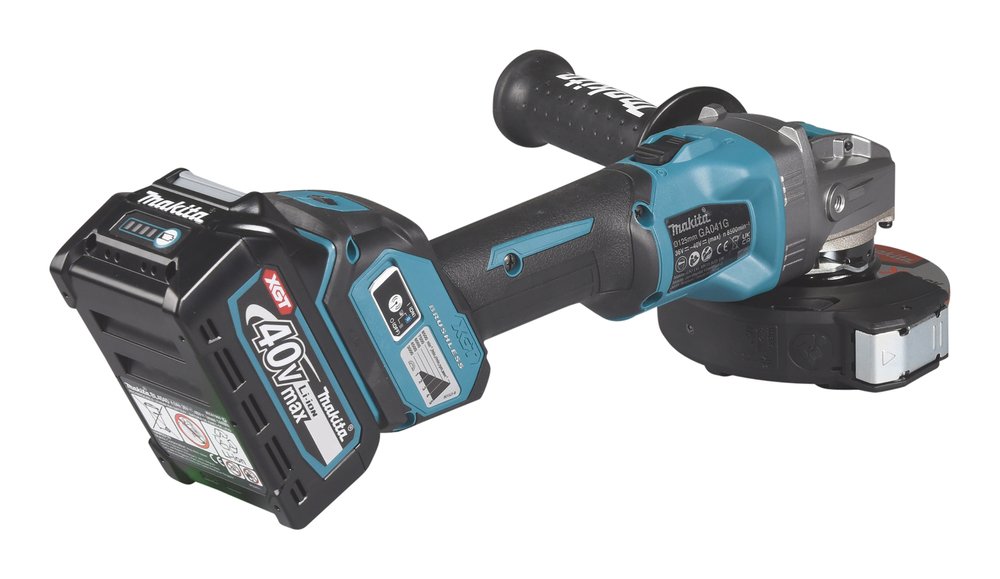 40Vmax • 125 mm • 3. 000 – 9000 min⁻¹ Eficiente herramienta con motor BL sin escobillas para cortar y amolar con X-LOCK. DescripciónLa GA041G es excelente en trabajos pesados continuos. El interruptor deslizante combinado con el potente motor BL proporciona 9000 min-¹ que supera a las máquinas con cable de 1. 000 W en eficiencia. «GA041G» es una herramienta de alta resistencia hecha para profesionales. El mecanismo X-LOCK permite instalar/desinstalar las ruedas X-LOCK con una sola acción sin necesidad de herramienta. Minimiza el tiempo de inactividad entre los cambios de ruedas, minimiza el exceso de apriete y aflojamiento de las ruedas. Sistema inalámbrico de arranque automático (AWS), tecnología de detección de retroalimentación activa (AFT) que apaga el motor si la velocidad de rotación disminuye repentinamente o la rueda se para». Beneficios del usuarioArranque suave para una puesta en marcha sin problemasEl circuito de protección de la batería protege contra la sobrecarga, la sobredescarga y el sobrecalentamiento. Freno eléctrico para máxima productividad y mayor seguridad del operadorLa tecnología de detección de retroalimentación activa (AFT) detiene el motor si la rotación se detiene repentinamenteTecnología de protección extrema (XPT) diseñada para ofrecer una mayor resistencia al polvo y al agua en las duras condiciones del lugar de trabajo. Especificaciones técnicasTensión XGT, 1Tensión nominal de la batería, 40 VVelocidad sin carga, 9000 min⁻¹Máx. Profundidad de corte, 31 mmSistema Anti-Restart (Interruptor NVR), 1Freno eléctrico, 1Preparado para AWS, 1Diámetro del disco, 125 mmNivel de potencia sonora (LWA), 91 dB(A)Nivel de presión sonora (LpA), 83 dB(A)Incertidumbre del ruido (Factor K), 3 dB(A)Peso de la herramienta con batería, 3, 0 – 5, 3 kgDimensiones de producto (L x W x H), 433x140x163 mmNivel de vibración, lijado con disco, ≤ 2, 5 m/s²Incertidumbre de vibración (Factor K), lijado con disco, 1, 5 m/s²Nivel de vibración, rectificado de superficies, 5, 2 m/s²Incertidumbre de vibración (Factor K), rectificado de superficies, 1, 5 m/s²Motor sin escobillas, 1Otras características relevantesArranque suave Freno eléctrico Recogida de polvo Sistema antirestart Velocidad constante Velocidad variableAFT Freno eléctrico Motor sin escobillas Next Generation Technology Sistema AWS Tecnología de protección extrema XPT X-LOCKEquipo básico141L27-4, Protector de disco 125 mm158237-4, Empuñadura199710-5, Protector de disco 125 mm224447-6, Brida internaE-00402, Disco de rectificar X-Lock, 125×6, 0 mm, WA36N