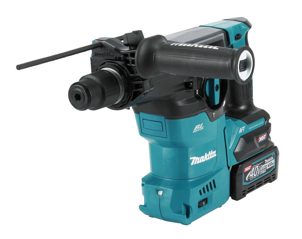 40Vmax • SDS–PLUS • 30 mm • 3, 9 J Martillo ligero antivibratorio de tres modos con arranque de extracción de polvo a distancia para profesionalesDescripciónHR008G es un potente martillo ligero alimentado por batería XGT® con baja vibración gracias a 2 contrapesos, empuñadura trasera antivibración y empuñadura lateral antivibración, pero manteniendo una alta potencia. El HR008G de Makita tiene la eficiencia de perforación aumentada drásticamente por el mecanismo de martillo esigned Rojo. Una gran cantidad de diferentes tecnologías se embala en este Martillo ligero, Tecnología Anti-Vibración (AVT) para baja vibración. Sistema inalámbrico de arranque automático (AWS) que se conecta al aspirador compatible con el adaptador Bluetooth. AFT (tecnología de detección de retroalimentación activa) para contragolpear. Beneficios del usuarioBajo consumo gracias al motor BL sin escobillasEl circuito de protección de la batería protege contra la sobrecarga, la sobredescarga y el sobrecalentamiento. El control de velocidad constante mantiene la velocidad constante bajo cargaEl mango de agarre suave proporciona mayor comodidad en el trabajoEl sistema inalámbrico de arranque automático (AWS) se conecta a aspiradoras compatibles con BluetoothFuncionamiento en 3 modos, «Sólo rotación», «Martilleo con rotación» o «Sólo martilleo» para múltiples aplicacionesLa tecnología antivibraciones AVT (tecnología antivibración) garantiza un rendimiento extra bajo en vibracionesMotor sin escobillas, sin mantenimiento y de larga duraciónTecnología de protección extrema (XPT) diseñada para ofrecer una mayor resistencia al polvo y al agua en las duras condiciones del lugar de trabajo. Especificaciones técnicasTensión XGT, 1Tensión nominal de la batería, 40 VQuímica de la batería (Ni-Cd / Ni-MH / Li-ion), Li-ionVelocidad sin carga, 0 – 840 min⁻¹Impactos por minuto (IPM), 0 – 4500 min⁻¹Máx. Diámetro de perforación en madera, 32 mmMax. Diámetro de perforación en hormigón, 30 mmMáx. Diámetro de perforación en acero, 13 mmDiámetro óptimo de perforación en hormigón, 8 – 22 mmEnergía de impacto, 3, 9 JDiámetro de perforación con broca TCT, 80 mmAdaptado para brocas SDS-PLUS, 1Freno eléctrico, 1Preparado para AWS, 1Nivel de potencia sonora (LWA), 103 dB(A)Nivel de presión sonora (LpA), 95 dB(A)Incertidumbre del ruido (Factor K), 3 dB(A)Peso de la herramienta con batería, 5, 2 – 6, 8 kgDimensiones de producto (L x W x H), 422x97x242 mmNivel de vibración, perforación en metal, 5, 1 m/s²Incertidumbre de vibración (Factor K), perforación en metal, 1, 5 m/s²Nivel de vibración, perforación con martillo en hormigón, 11, 8 m/s²Incertidumbre de vibración (Factor K), perforación con martillo en hormigón, 1, 5 m/s²Nivel de vibración, Cincelado, 8, 6 m/s²Incertidumbre de vibración (Factor K), Cincelado, 1, 5 m/s²Motor sin escobillas, 1Otras características relevantesFreno eléctrico Limitador de par Luz de trabajo incorporada Recogida de polvo Reversible Sistema antirestart Vástago SDS-PLUS Velocidad constante Velocidad variableAFT Motor sin escobillas Next Generation Technology Sistema AWS Tecnología Anti Vibración Tecnología de protección extrema XPTEquipo básico331886-4, Tope de profundidad198993-4, Recipiente de grasa para la broca 100 ml443122-7, Paño de limpieza126882-3, Asa lateral