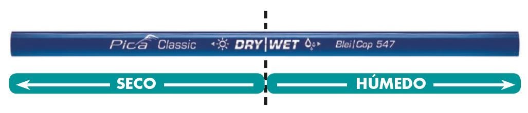 · Lado «SECO» (DRY): mina de carpintero 2H para marcar en madera seca
