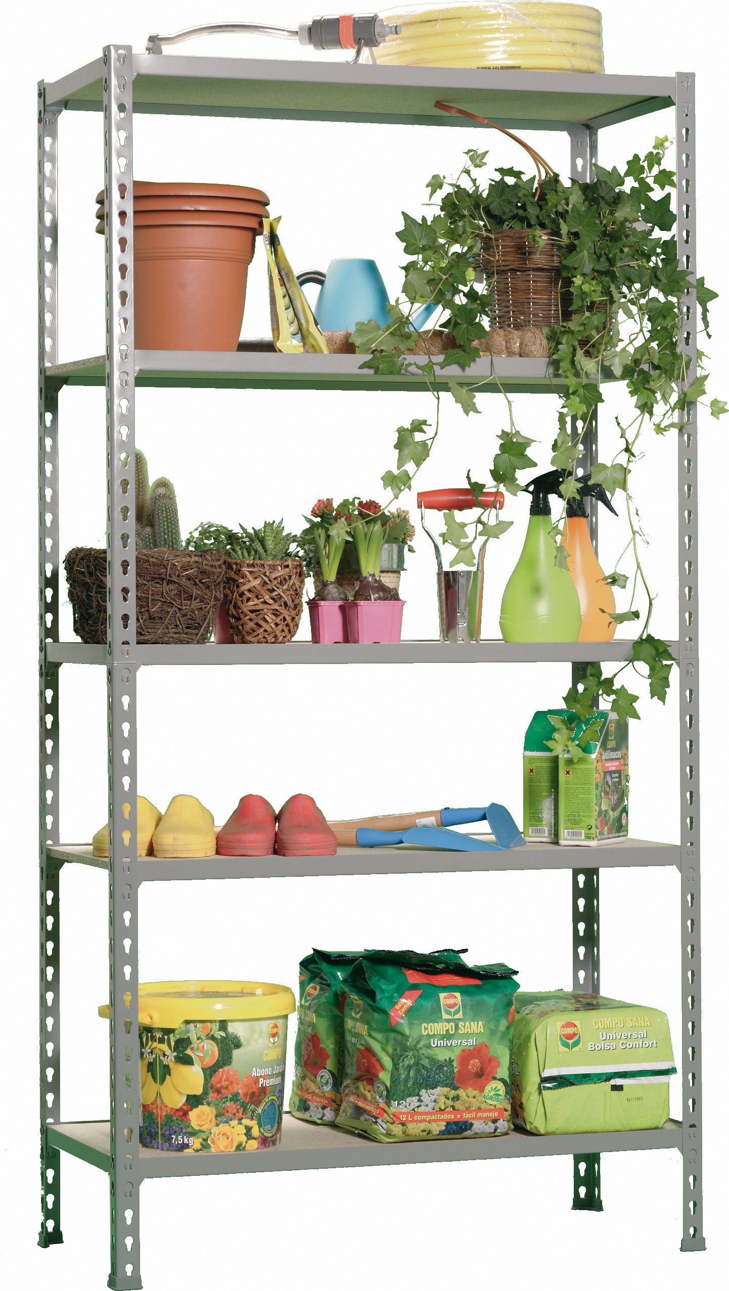 Estanteria metalica sin tornillos de color GRIS/MADERA con capacidad de carga por estante de 150 kg. El numero de estantes es 5 y las medidas (alto x ancho x fondo) son 1800x900x400 mm. Tiene estantes de aglomerado de 12 mm. Producto europeo de calidad europea, podras encontrar las instrucciones de montaje en su interior o en este enlace, https, //www. youtube. com/watch?v=J8R6iEhkKA0&t=3s. Medidas en uso del producto, 1787x877x410 mm
