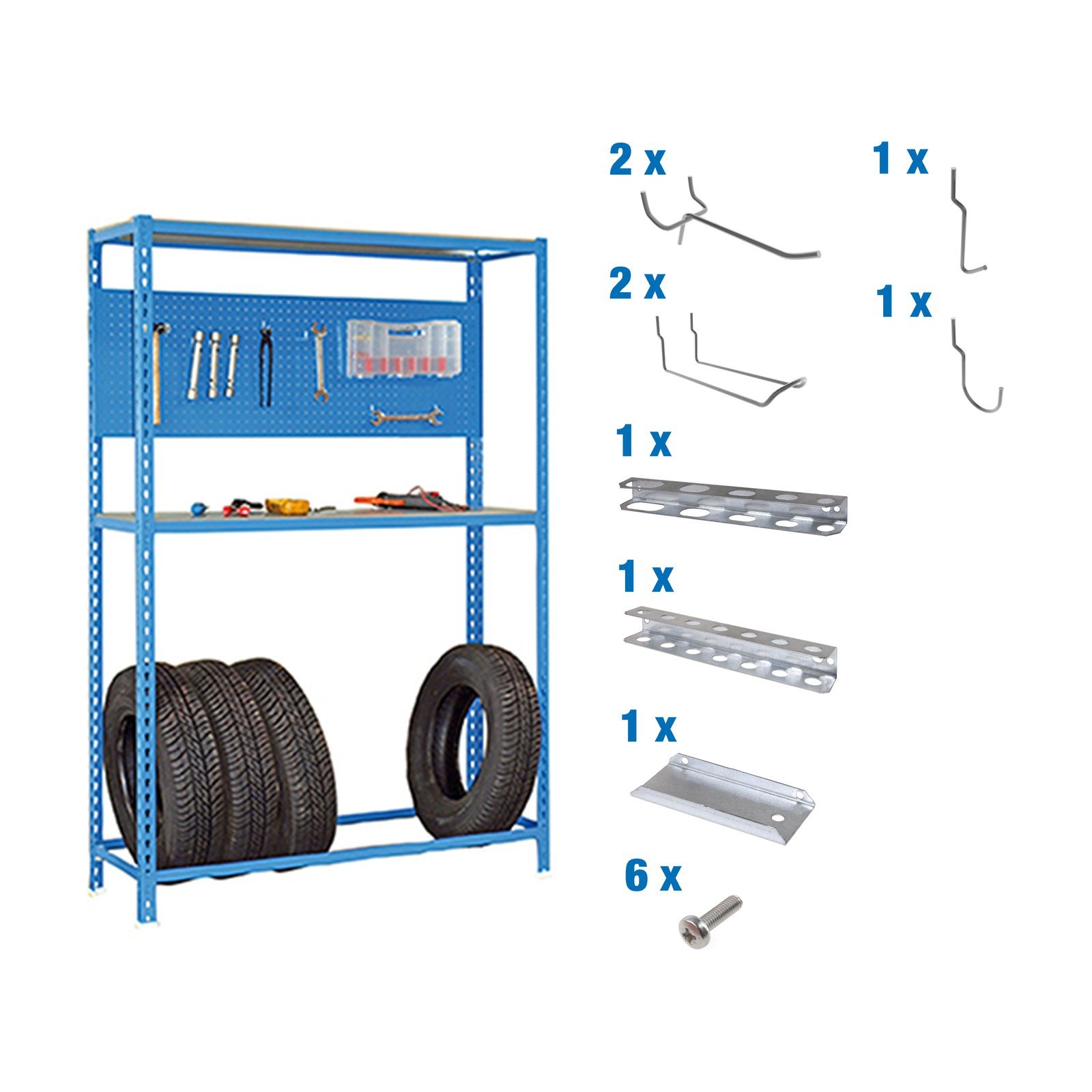 Estanteria metalica sin tornillos mas 9 accesorios de color azul/galva. Tiene una capacidad de carga por estante de 180 kg. Con unas medidas en mm de 2000x1200x400. Fabricada en Europa por Simonrack y se monta rapido siguiendo las instrucciones