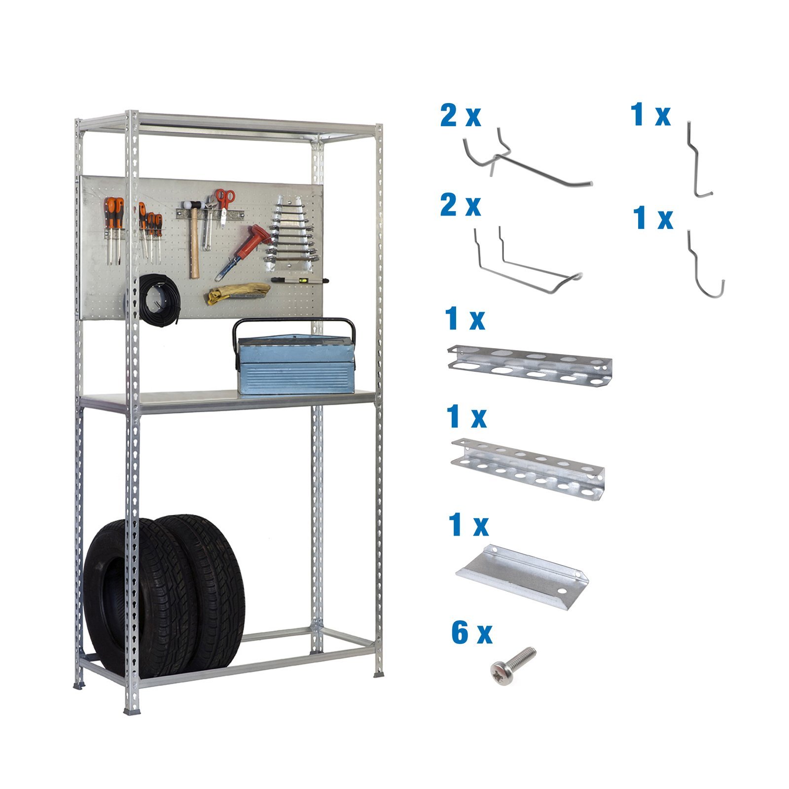 Estanteria metalica sin tornillos mas 9 accesorios de color galvanizado. Tiene una capacidad de carga por estante de 180 kg. Con unas medidas en mm de 2000x1200x400. Fabricada en Europa por Simonrack y se monta rapido siguiendo las instrucciones