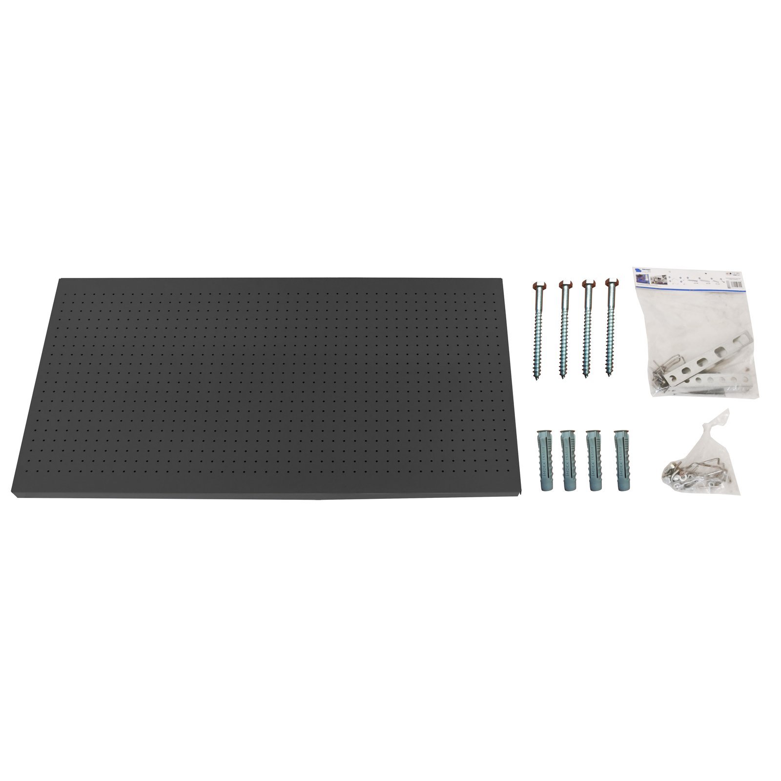 Panel metalico para herramientas + 22 ganchos + 3 accesorios. Color, antracita, Dimensiones (alto x ancho x fondo), 600x1500x35 mm. Organiza mas y mejor tu taller o trastero. Incluye 4 tornillos + 4 tacos para anclaje a la pared. fabricado en Europa por Simonrack. Se monta facil siguiendo las instrucciones. Medidas en uso del producto, 610x1510x35 mm