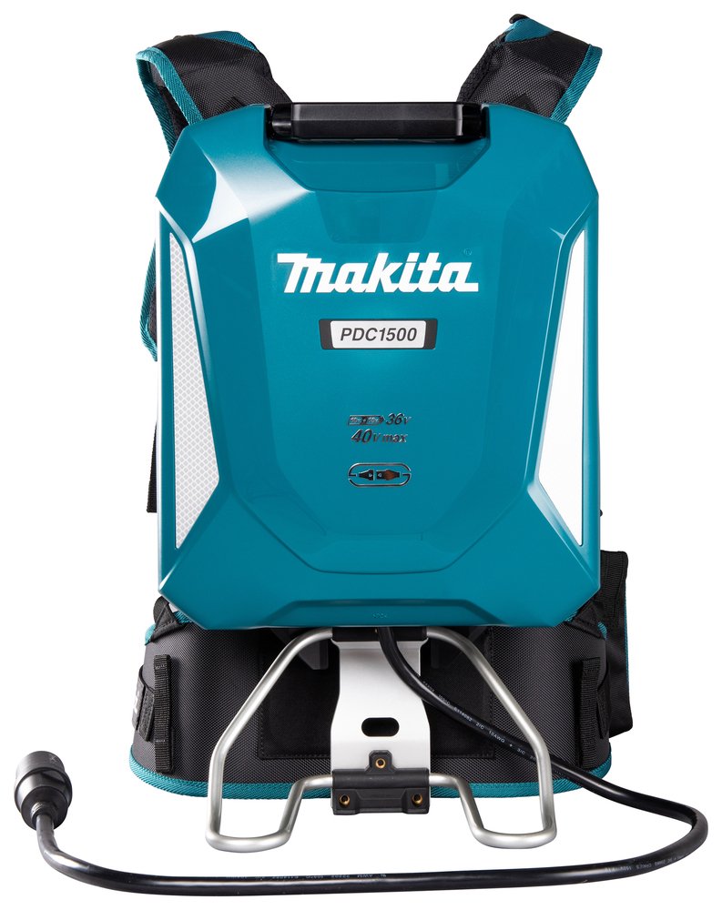 40Vmáx, 43, 55 Ah, 1. 567 Wh Batería de mochila con una capacidad energética de 1. 500Wh. DescripciónProporciona una cómoda experiencia gracias a la estructura del arnés. Interruptor de alimentación principal con función de apagado automático. El conector intermedio entre la herramienta / máquina eléctrica y la PDC1500 se desconecta automáticamente si el cable de la herramienta / máquina eléctrica está cargado con un cierto peso. El soporte permite al usuario colocar la PDC1500 en posición vertical sobre un banco de trabajo adecuado. Cargador DC4001 común con la PDC1200. 7, 5 horas para la carga completa con el cargador DC4001. Productos recomendados (a partir de julio de 2023) Herramientas / máquinas con conector y máquinas XGT® y LXT® x2, Soplador, cortacésped, cabezal multifunción, cortasetos, sierra de cadena (excepto la de mango superior), sierra de pértiga, amoladora angular, martillo perforador, vibrador para hormigón. Compatible con el comprobador de baterías BTC04 mediante el adaptador intercambiable BTC07Beneficios del usuarioArnés regulable en alturaCompatible con 3 plataformas, LXT® 18V X2, XGT® 40V max y conexión directa (con herramientas compatibles)El sistema de protección de la batería corta automáticamente la alimentación cuando el nivel de la batería es bajoEmpuñadura plegableVarias opciones de uso, como batería de mochila o como fuente de alimentación estacionaria. Especificaciones técnicasTensión LXT, 1Tensión XGT, 1Tensión nominal de la batería, 2×18 / 40 VCapacidad de la batería, 43, 55 AhCapacidad energética, 1567, 8 WhQuímica de la batería (Ni-Cd / Ni-MH / Li-ion), Li-ionTiempo de carga medio, 450 minPeso neto del producto, 11, 1 kgDimensiones de producto (L x W x H), 369x312x131 mmClase de protección internacional (IP), IPX4Otras características relevantes18V+18V=36V LXT Litio-Ion Next Generation Technology Plug-In Tecnología de protección extrema XPT