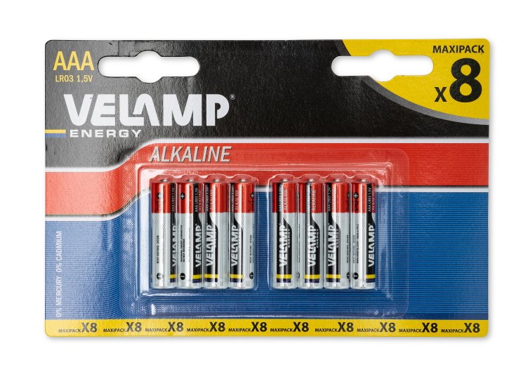 Pilas alcalinas AAA de 1,5 V, adecuadas para diversos dispositivos como mandos de juego, juguetes, linternas, cámaras digitales y relojes. Vida útil de 5 años con conservación óptima de energía. Diseño mejorado con doble engarce, nueva composición de zinc y componentes anticorrosión que garantizan sello hermético al aire y resistencia a líquidos. No recargables.