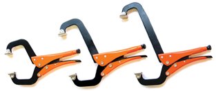 Tres modelos diferentes. La capacidad de un modelo empieza donde termina el anterior. Adecuado para trabajos en madera y mecánica general. Tres tamaños con capacidades de 80-300 mm: alternativa rápida a los modelos de barra deslizante, ya que no se pierde el ajuste. Oscilantes moleteados que agarran superficies paralelas, incluso inclinadas, sin dañarlas. Presentación: bolsa con cartón y etiqueta.