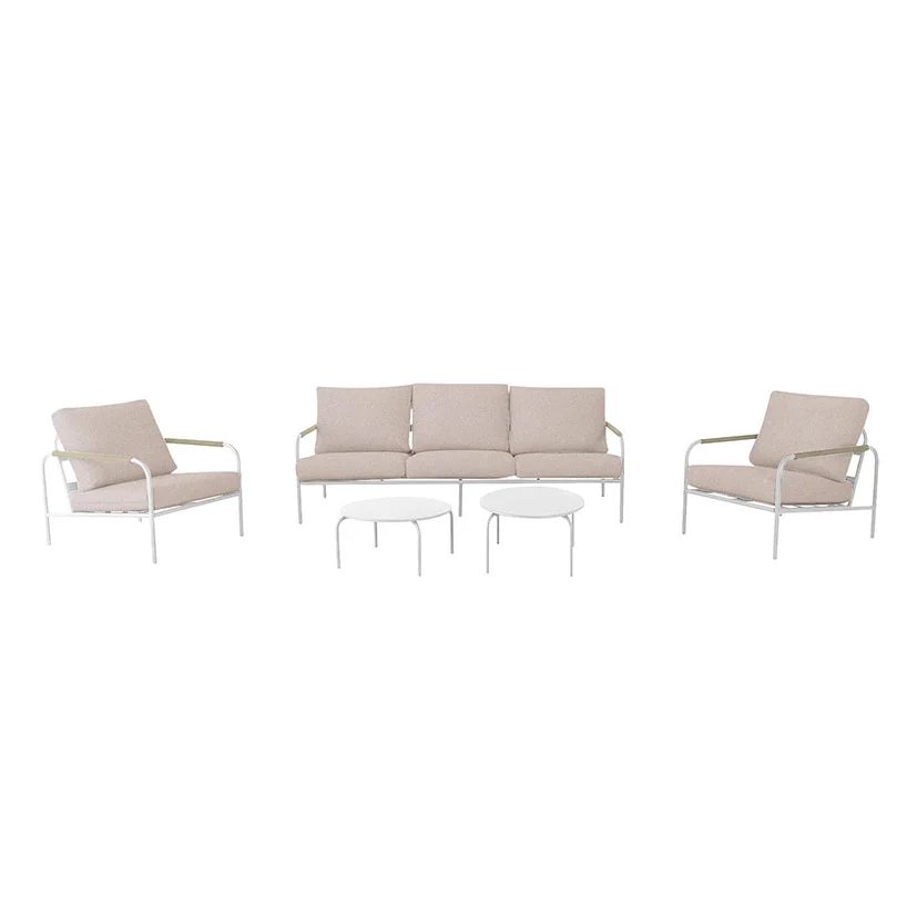 Sofá 3 Plazas, 209x90x69 cm. R Butaca, 73x90x69 cm. (2 Unid). R Mesa Pequeña, Ø 60×37 cm. R Mesa Grande, Ø 70×30 cm.