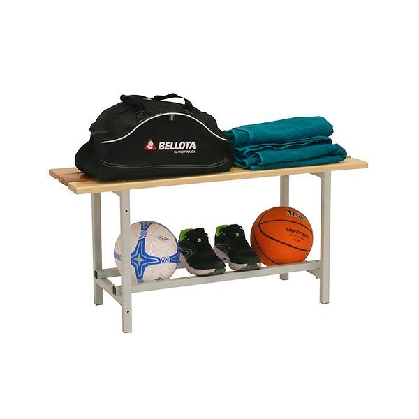 Banco de vestuario con estructura metalica pintada y asiento de listones de madera. Medidas (alto x ancho x fondo) 475x1000x320 mm. Color, gris/madera. Montaje facil y rapido con tornillos. Se envia desmontado. Producto fabricado en Europa por Simonrack