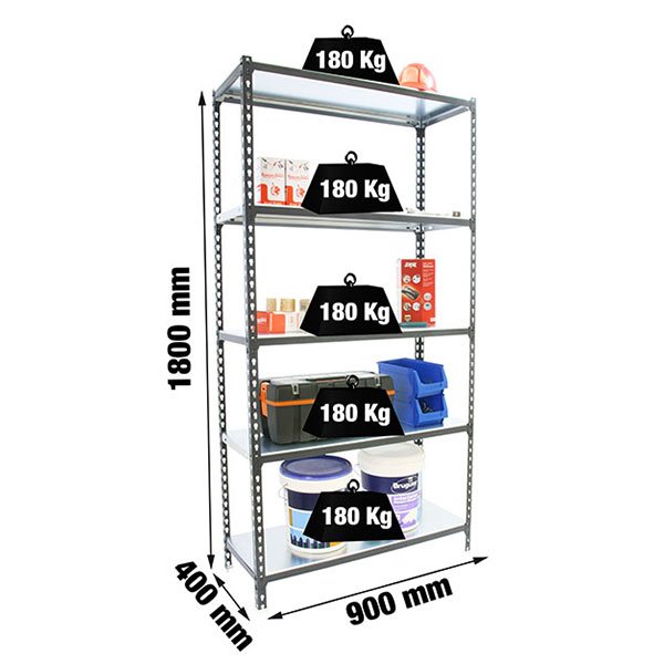 Estanteria sin tornillos, bandeja metalica. Color, ANTRACITA/GALVA. Tiene 5 estantes. Dimensiones, 1800x900x400 mm. Capacidad de carga, 180 kgs, certificamos a punto de flexion, no de rotura. Unico sistema de ordenacion del mundo que puede colocar las bandejas en posiciones diferentes, recta o estandar, inclinada y contenedora. fabricado en Europa por Simonrack y se monta rapido siguiendo las instrucciones
