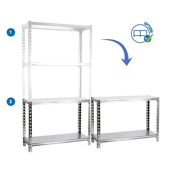 Estanteria metalica sin tornillos, de color galva/galva con 4 estantes. Tiene una capacidad de carga por estante de 200 kg y una capacidad total de 800 kgs. Con unas medidas en mm de 1500x1200x300. Es el unico sistema de ordenacion del mundo que puede colocar las bandejas en 3 posiciones diferentes, recta o estandar, inclinada y contenedora. Fabricada en Europa por Simonrack y se monta rapido siguiendo las instrucciones