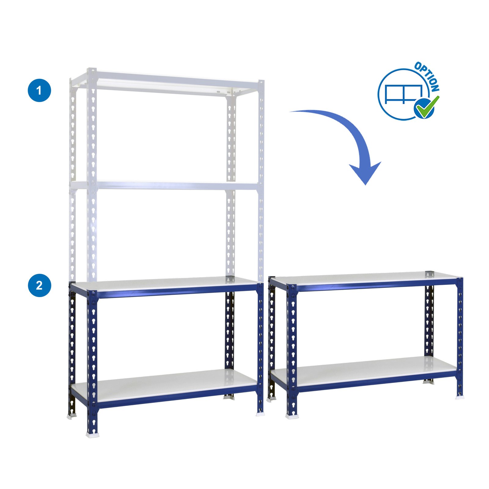 Estanteria metalica sin tornillos, de color azul/galva con 4 estantes. Tiene una capacidad de carga por estante de 200 kg y una capacidad total de 800 kgs. Con unas medidas en mm de 1500x1200x400. Es el unico sistema de ordenacion del mundo que puede colocar las bandejas en 3 posiciones diferentes, recta o estandar, inclinada y contenedora. Fabricada en Europa por Simonrack y se monta rapido siguiendo las instrucciones