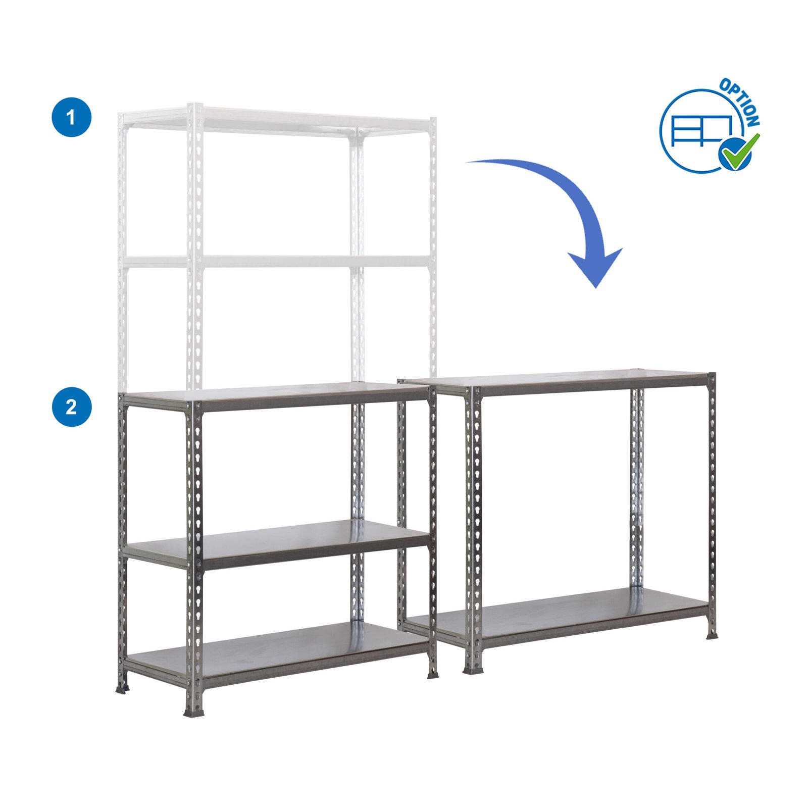 Estanteria metalica sin tornillos, de color galva/galva con 5 estantes. Tiene una capacidad de carga por estante de 200 kg y una capacidad total de 1000 kgs. Con unas medidas en mm de 2000x1200x500. Es el unico sistema de ordenacion del mundo que puede colocar las bandejas en 3 posiciones diferentes, recta o estandar, inclinada y contenedora. Fabricada en Europa por Simonrack y se monta rapido siguiendo las instrucciones
