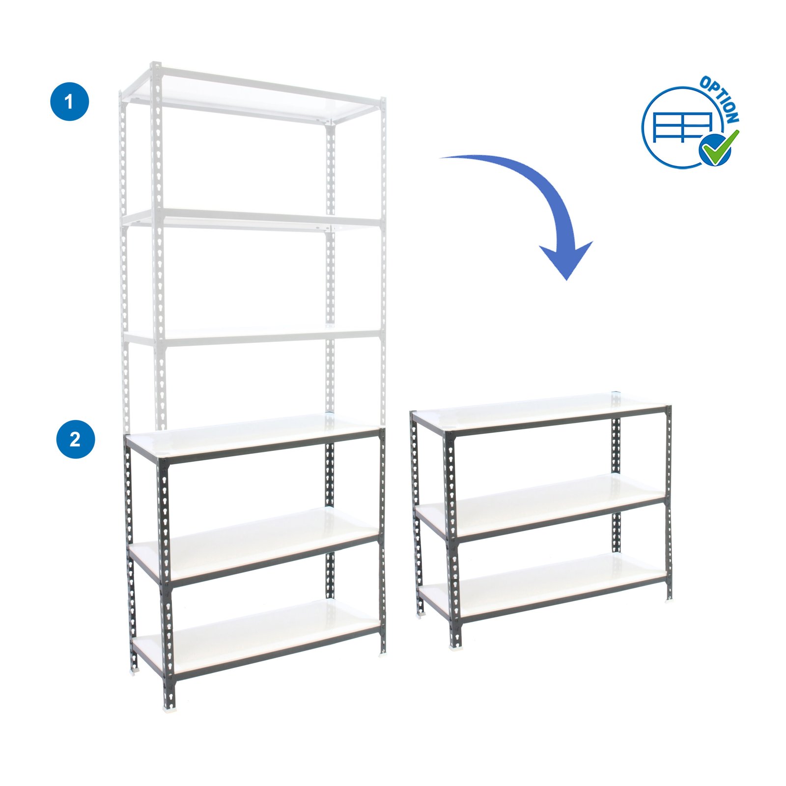 Estanteria metalica sin tornillos con bandeja metalica, de color ANTRACITA/BLANCO. Tiene 6 estantes. Las dimensiones de esta estanteria son, 2500x1200x400 mm. Y tiene una capacidad de carga de 200 kgs por estante. Es el unico sistema de ordenacion del mundo que puede colocar las bandejas en 3 posiciones diferentes, recta o estandar, inclinada y contenedora. Es fabricado en Europa por Simonrack y se monta rapido siguiendo las instrucciones