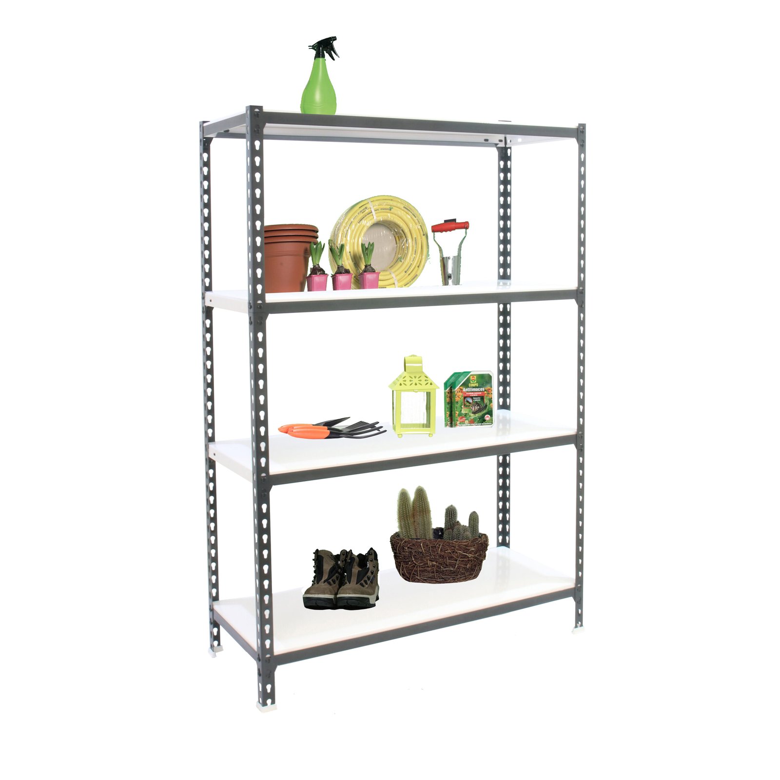 Estanteria metalica sin tornillos con bandeja metalica, de color ANTRACITA/BLANCO. Tiene 4 estantes. Las dimensiones de esta estanteria son, 1500x1000x300 mm. Y tiene una capacidad de carga de 180 kgs por estante. Es el unico sistema de ordenacion del mundo que puede colocar las bandejas en 3 posiciones diferentes, recta o estandar, inclinada y contenedora. Es fabricado en Europa por Simonrack y se monta rapido siguiendo las instrucciones