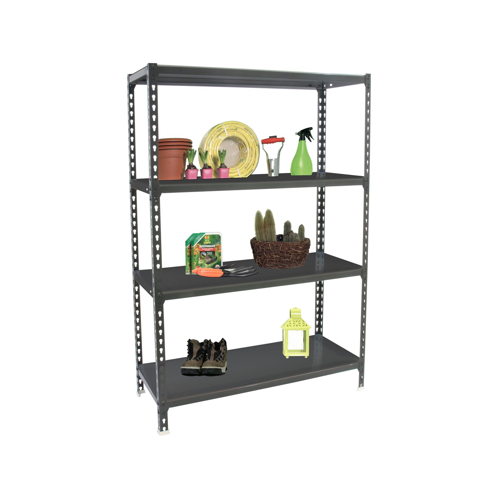 Estanteria metalica sin tornillos con bandeja metalica, de color ANTRACITA/ANTRACITA. Tiene 4 estantes. Las dimensiones de esta estanteria son, 1500x1000x400 mm. Y tiene una capacidad de carga de 180 kgs por estante. Es el unico sistema de ordenacion del mundo que puede colocar las bandejas en 3 posiciones diferentes, recta o estandar, inclinada y contenedora. Es fabricado en Europa por Simonrack y se monta rapido siguiendo las instrucciones