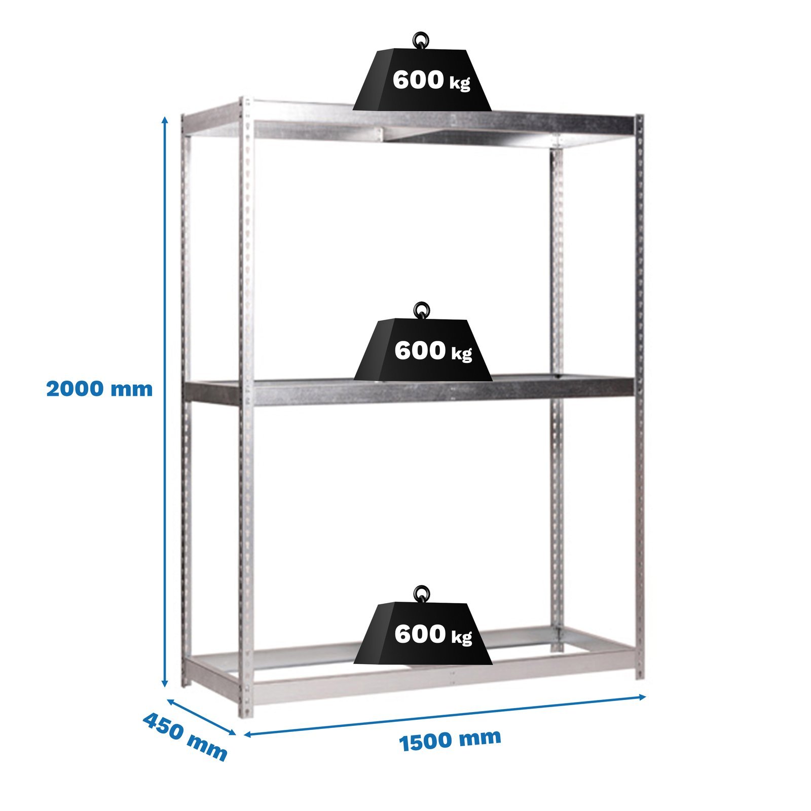 Estanteria metalica sin tornillos con 5 estantes. No contiene ni bandejas de aglomerado ni bandejas de metal. Estanteria que se monta de forma facil y comoda gracias a su sistema de click, sin tornillos simplemente con la ayuda de un martillo podras tener esta estanteria montada en unos minutos. Tienes a tu disposicion un video detallado de montaje en Youtube. La capacidad de carga de cada uno de los estantes es de 600 kgs. Contiene un refuerzo por estante. Contiene un recubrimiento plastico y acaaseo en epoxypoliester. Ademas es muy facil de limpiar. Manipulacion del producto sin aristas de corte, sin riesgos de manipulacion. Es un producto fabricado en Europa por Simonrack. Medidas en uso del producto, 1975x1510x460 mm